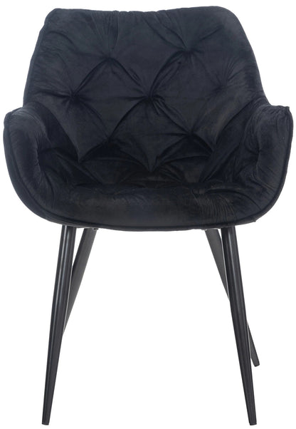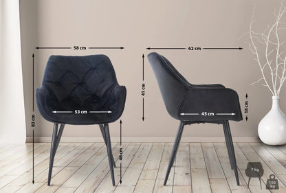 Das 2er-Set Idony-Samtstühle vereint Stilbewusstsein und Sitzkomfort. Die Stühle in Sesselform überzeugen durch ihr modernes Erscheinungsbild und den Komfort, der durch erhöhte Armlehnen und gepolsterte Rückenlehnen ermöglicht wird. Ein zeitgemäßer Metallfuß von 1,20 Metern verleiht dem Set die nötige Stabilität, während Bodenschoner unter den Füßen Kratzer und Flecken auf dem Boden verhindern. Durch die Verwendung wartungsfreundlicher Materialien lässt sich jeder Esszimmerstuhl mühelos und schnell reinigen.