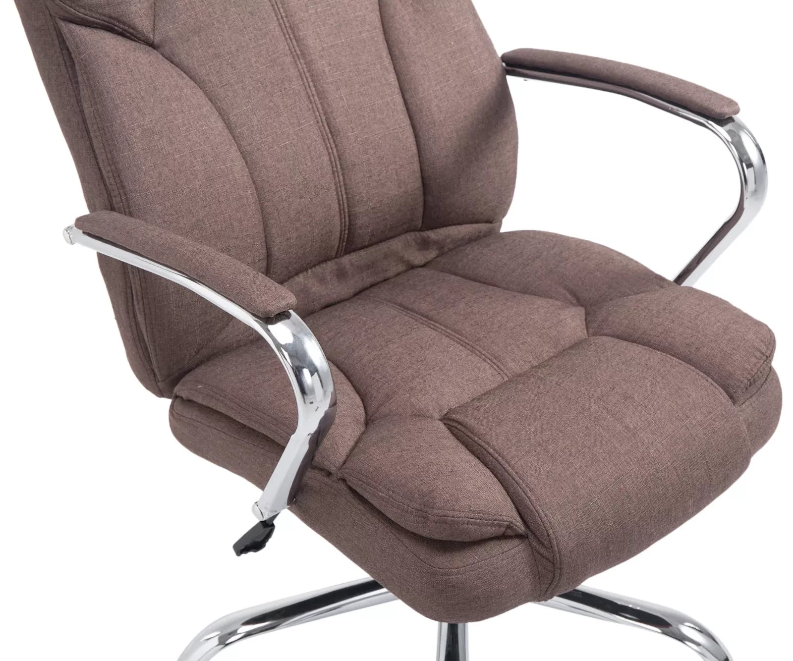 Der Chefsessel ist ein exklusiver Bürostuhl mit sehr hochwertiger Polsterung und moderner Stoffoptik. Die Stoffpolsterung sieht nicht nur schön aus, sondern ist auch besonders robust und pflegeleicht. Ein stabiler Metallrahmen sorgt zudem für einen sicheren Stand. Dank einer verstellbaren Sitzhöhe ist zudem ergonomisches Sitzen gewährleistet. Darüber hinaus lässt sich die Sitzhöhe mittels eines Hebels unter der Sitzfläche stufenlos verstellen. Ein eingebauter Wippmechanismus sorgt für mehr Bewegungsfreiheit. Der Bürostuhl steht stabil auf fünf leichtgängigen Rollen. Egal ob Hartboden oder Teppich, Sie rollen immer leicht und locker über den Boden.