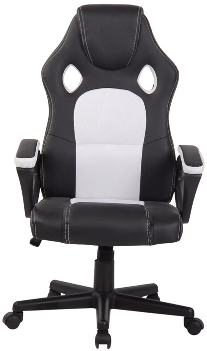 In And OutdoorMatch Gaming-Stuhl Christophe – Weiß – Verstellbar – Stuhl – Gaming-Stuhl mit Fußstütze – Ergonomischer Bürostuhl