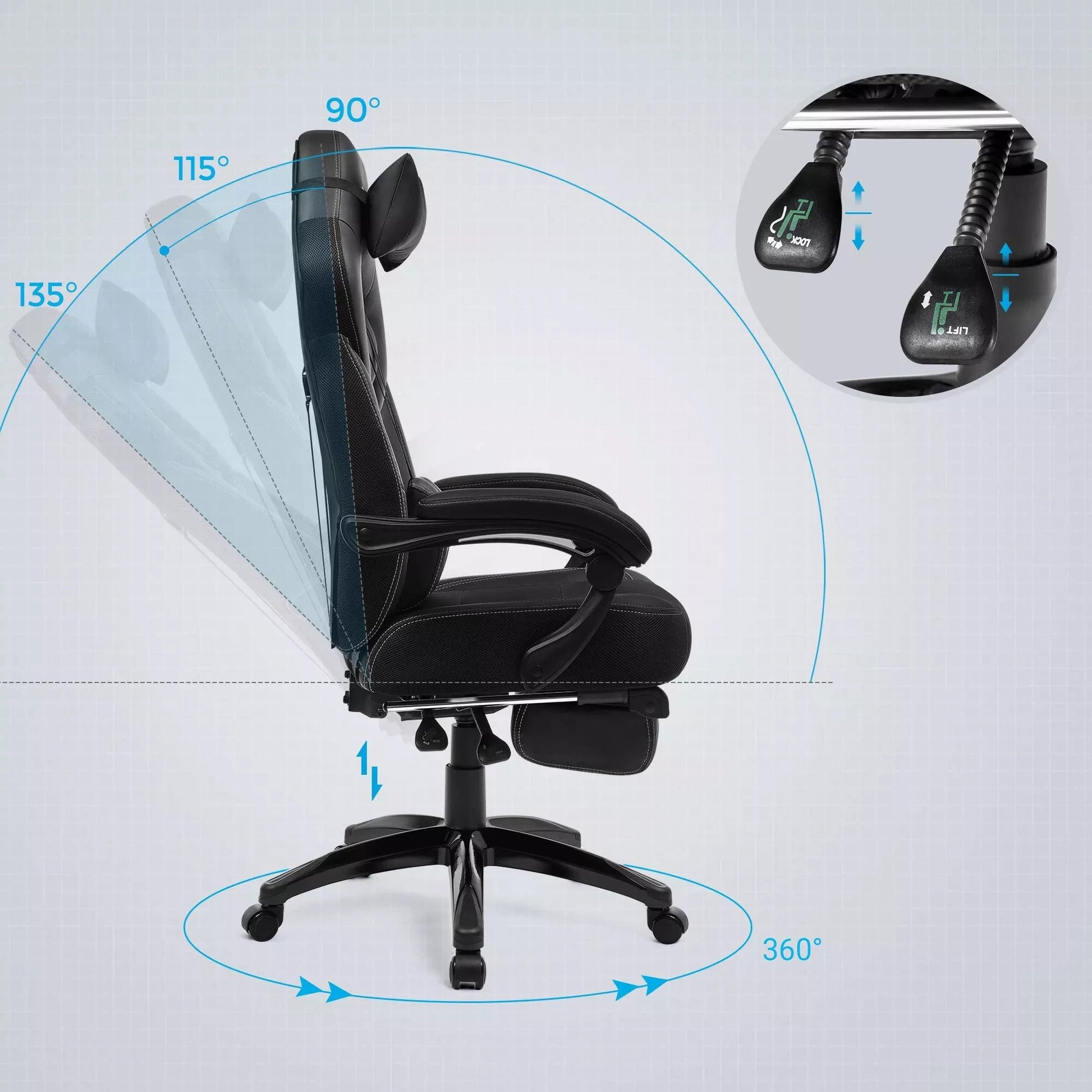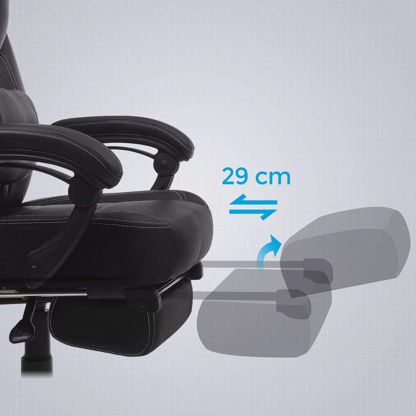 In And OutdoorMatch Gaming-Stuhl Orion – Schwarz – Verstellbar – Stuhl – Gaming-Stuhl mit Fußstütze – Wählen Sie einen ergonomischen Bürostuhl