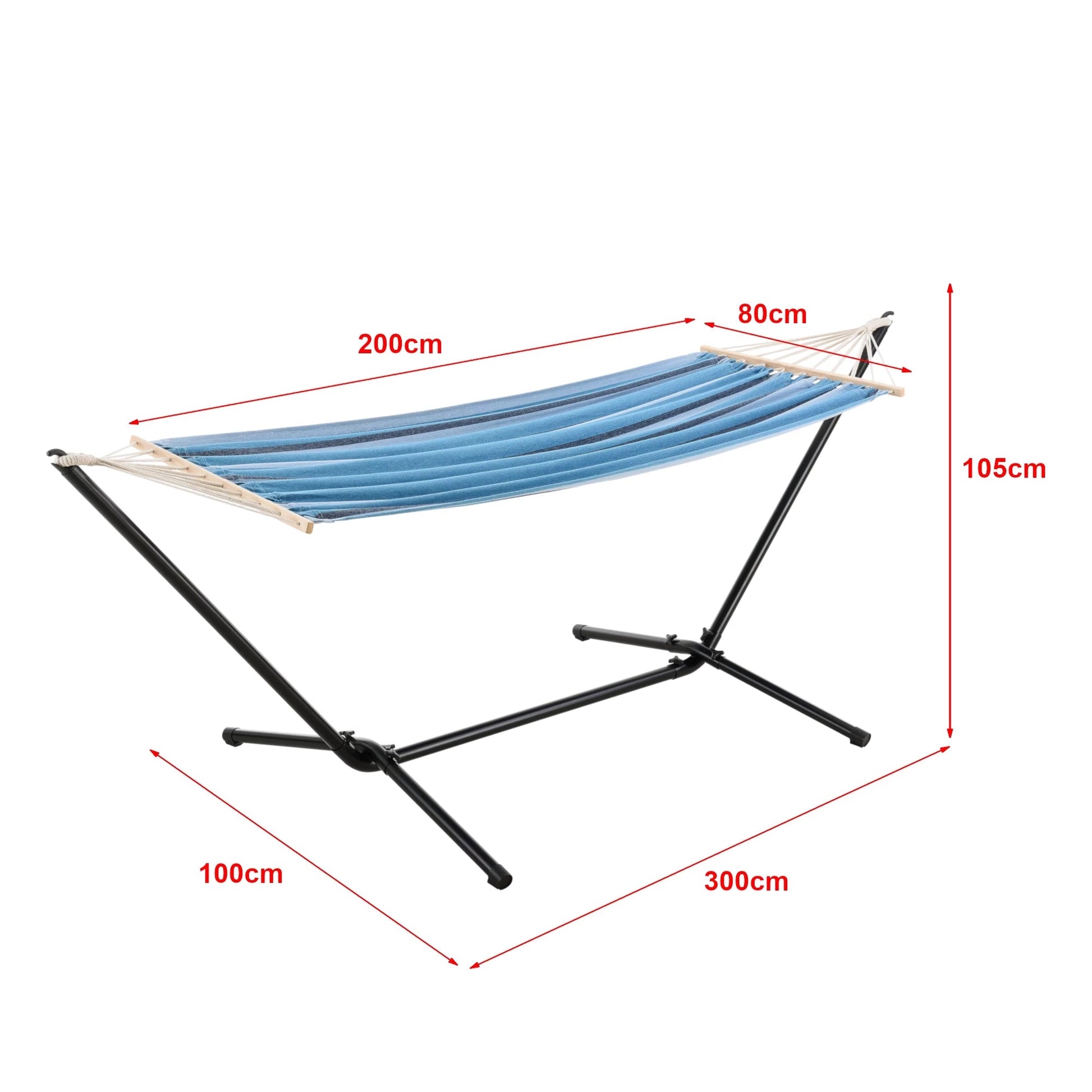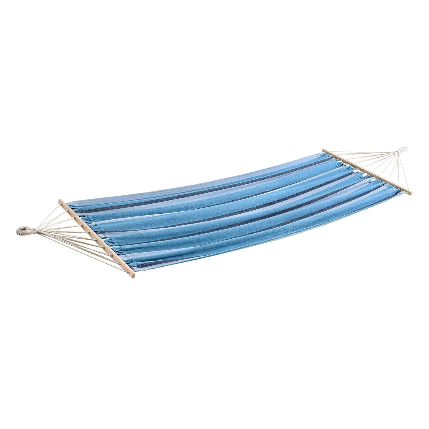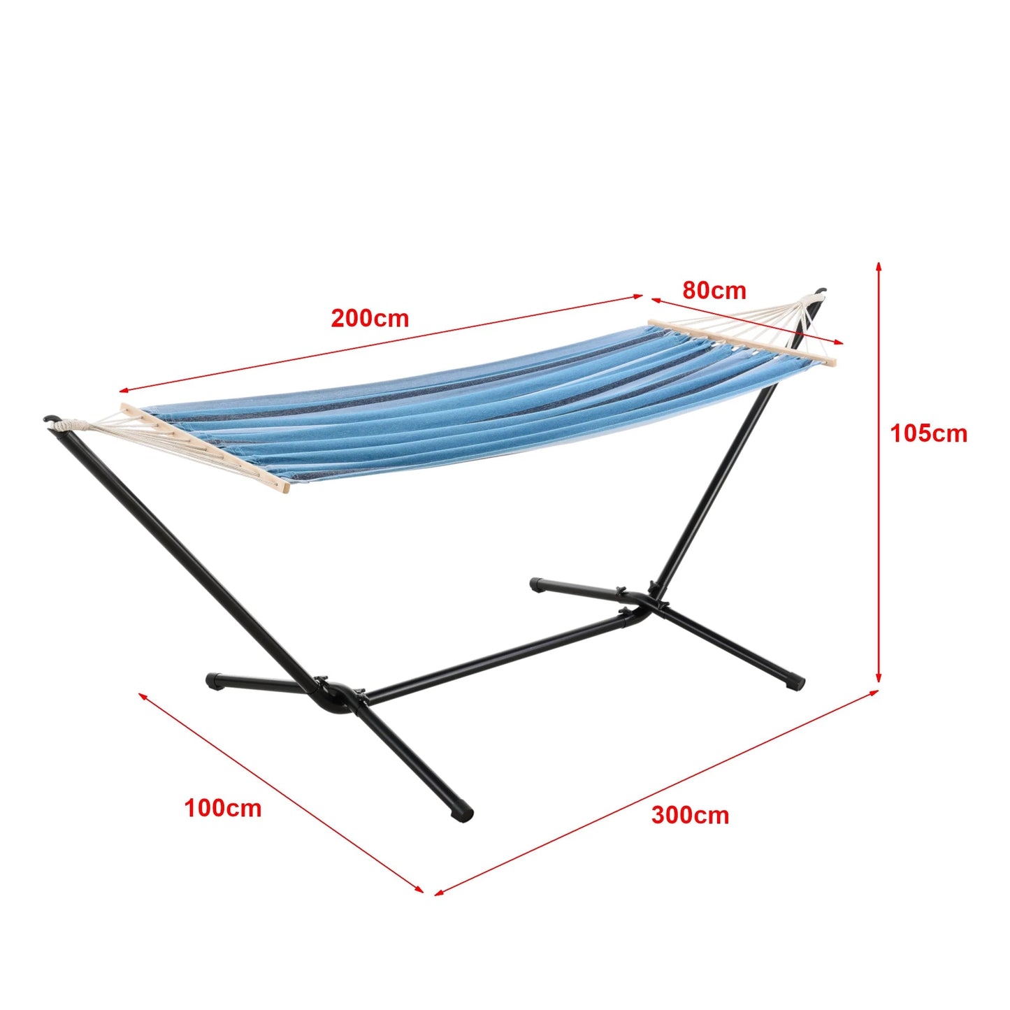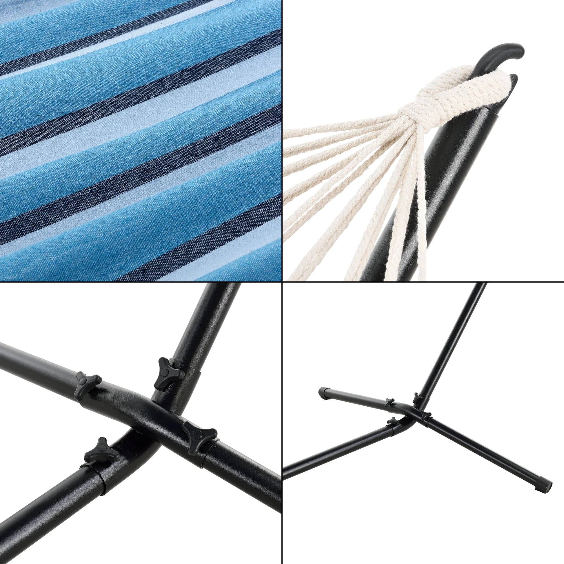 In And OutdoorMatch Hängematte Cara Cotton – mit Ständer – max. 120 kg – blau gestreift – Stahl und Stoff – drinnen und draußen