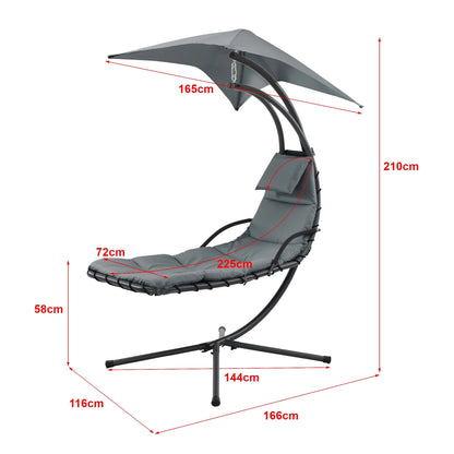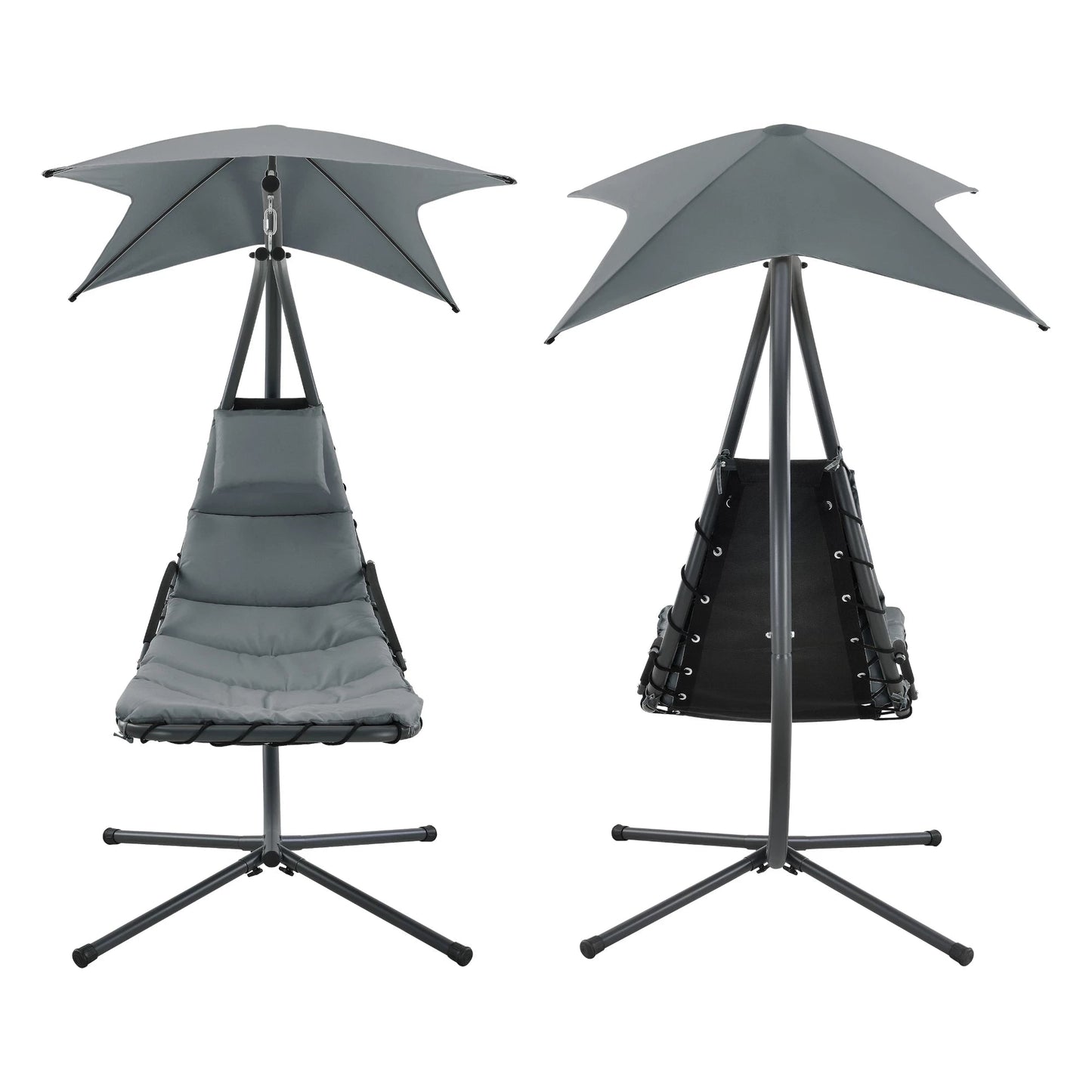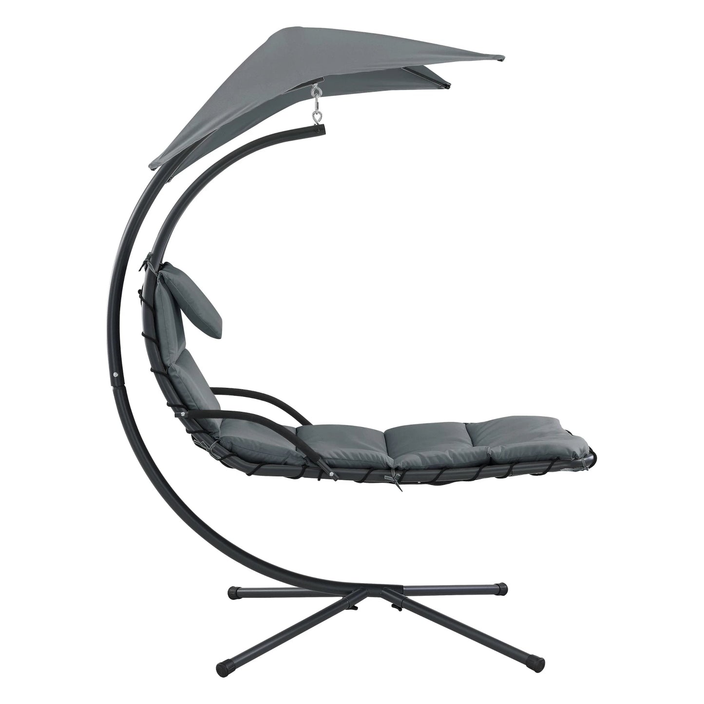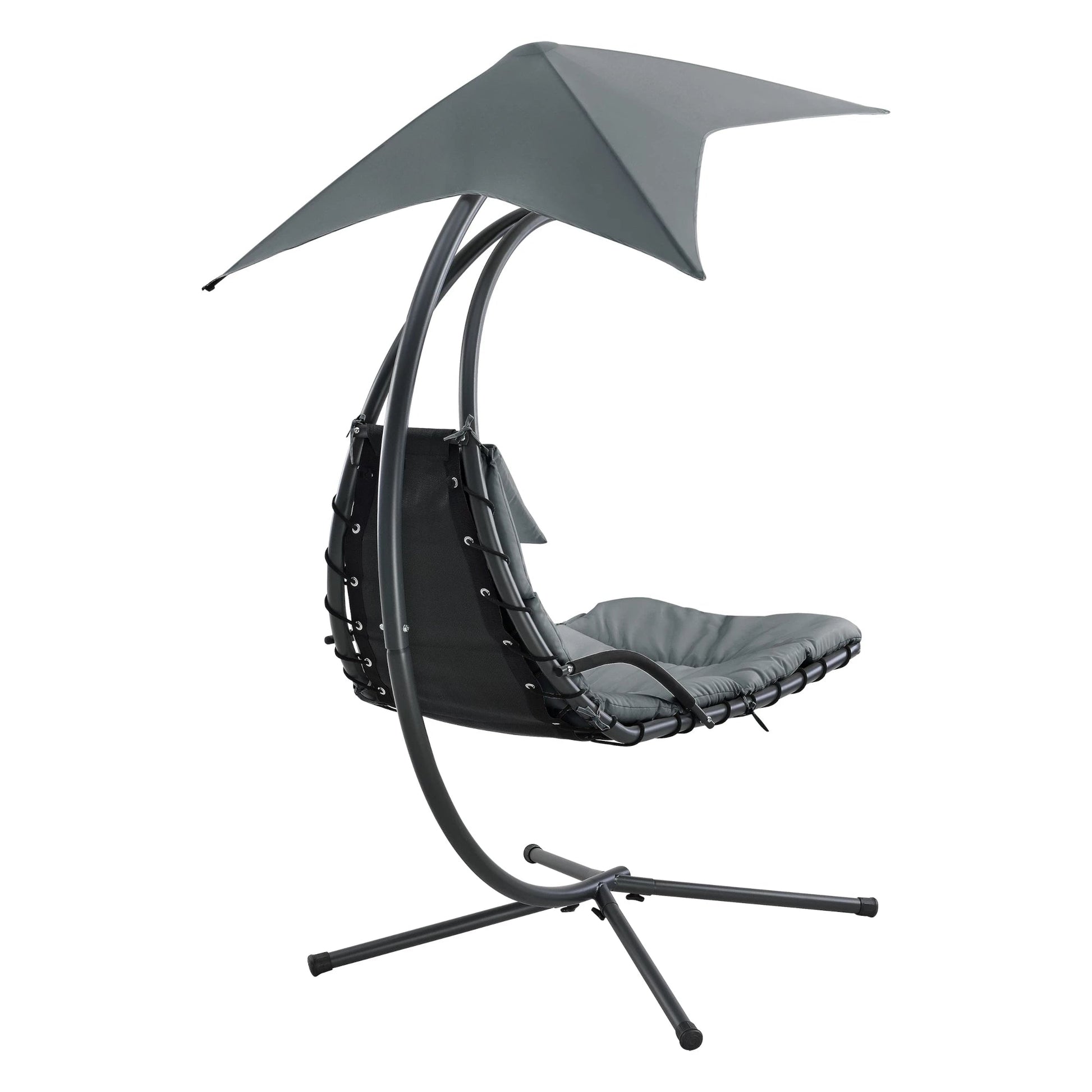 In And OutdoorMatch Hängematte Hipolito – Mit Baldachin und Ständer – 166 x 116 x 210 cm – Grau Schwarz – Schaumstoffpolsterung