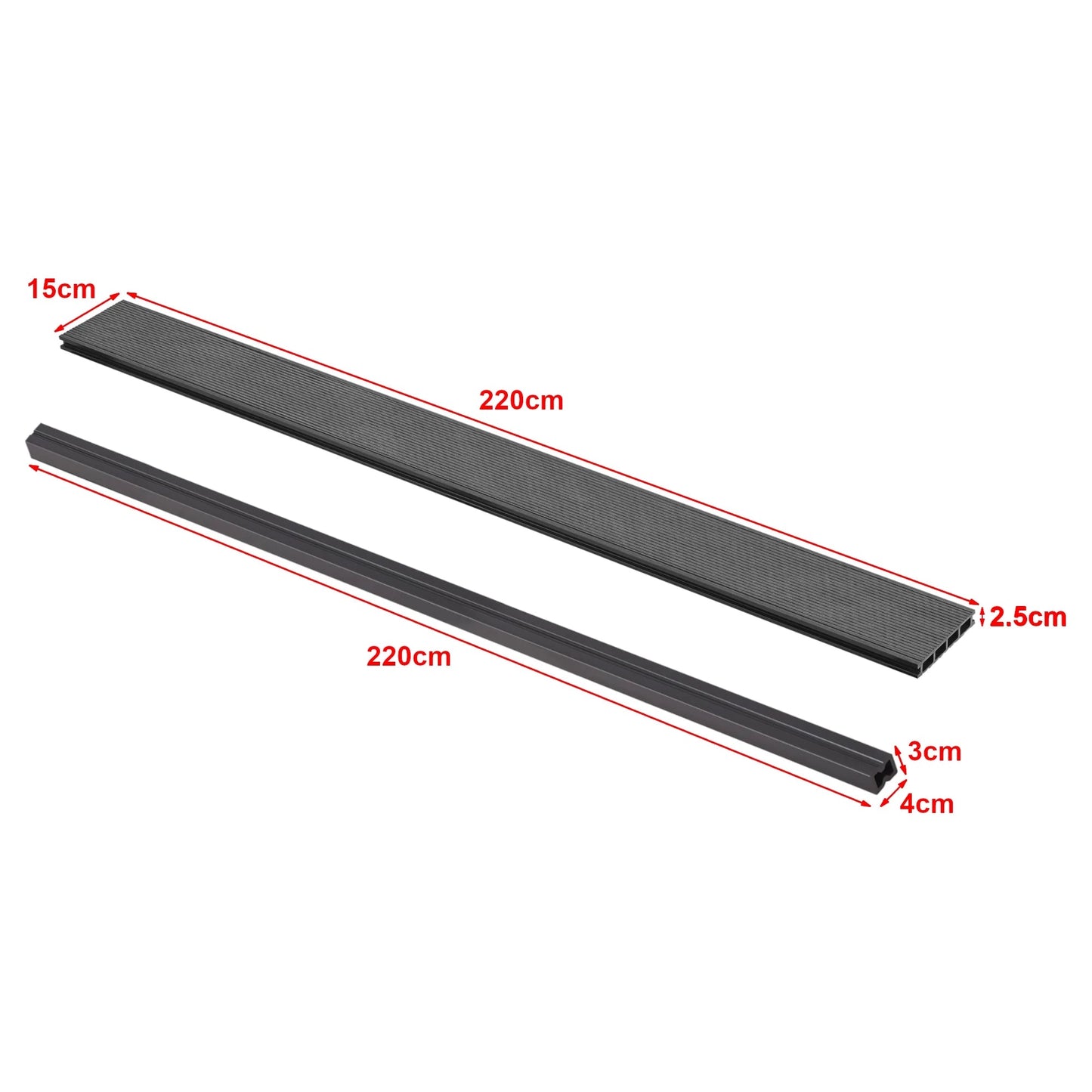 Mit diesem kompletten Bausatz können Sie den Boden Ihrer Terrasse oder Ihres Balkons schnell und einfach neu gestalten. Die Verbunddielen verleihen Ihrem Außenbereich eine saubere und gepflegte Atmosphäre.