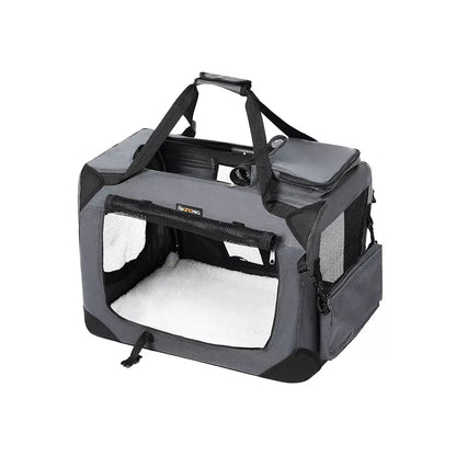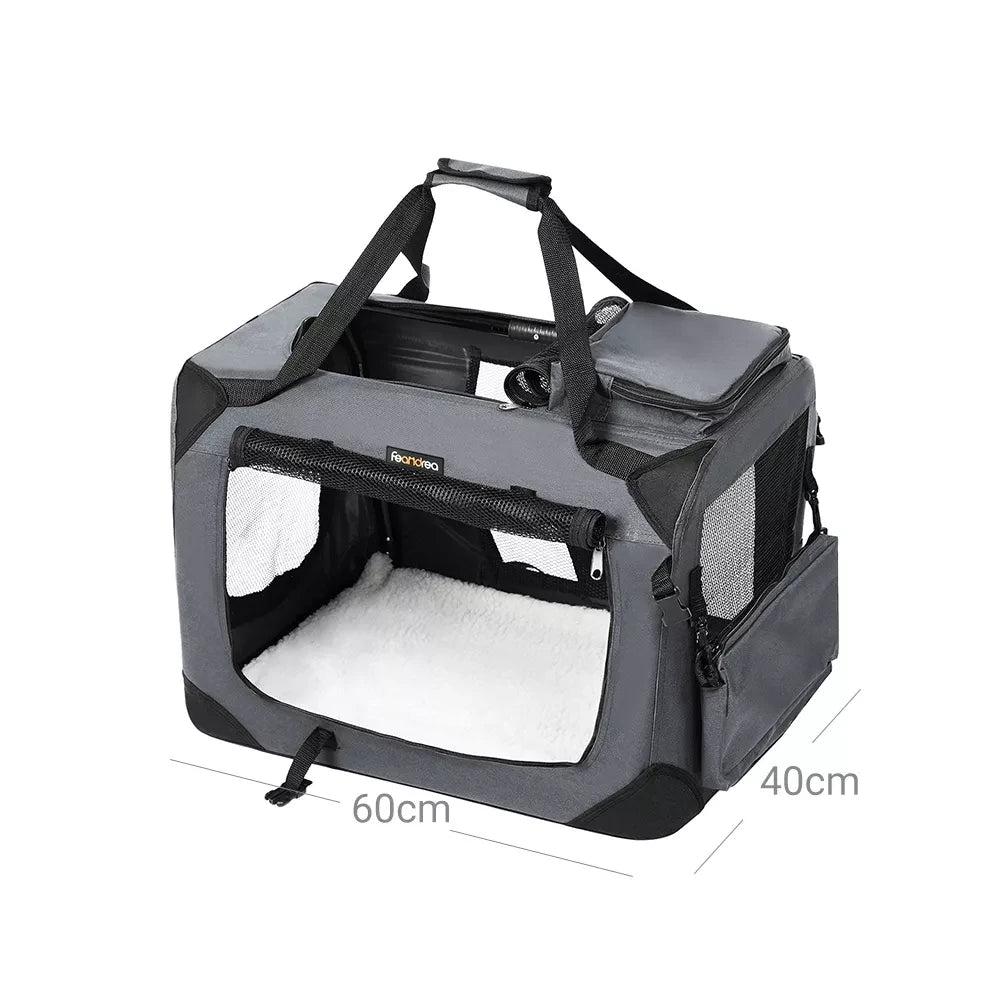 InAndOutdoorMatch bietet Ihnen verschiedene Produkte speziell für Ihr Haustier. Denken Sie an Kratzbäume, Hundetaschen, Körbe und vieles mehr. Unsere Produkte zeichnen sich durch eine gute Qualität aus und sind zudem eine stilvolle Ergänzung für Ihr (Wohn-)Zimmer. STÄRKE: Dank der 600D-Ochsen-Webstruktur ist diese Hundetrage besonders robust und langlebig. Außerdem ist er mit einer synthetischen Vliesmatte ausgestattet. EINFACH ZU REINIGEN: Reinigen Sie die Oberfläche der Tasche mit einer Handbürste. Auch die Matte im Inneren kann herausgenommen und separat gereinigt werden. SICHER: Durch die dreiseitigen Sichtfenster zirkuliert die Luft und die abgerundeten Ecken schützen Auto und Ausrüstung. ABMESSUNGEN: 60x40x40 cm