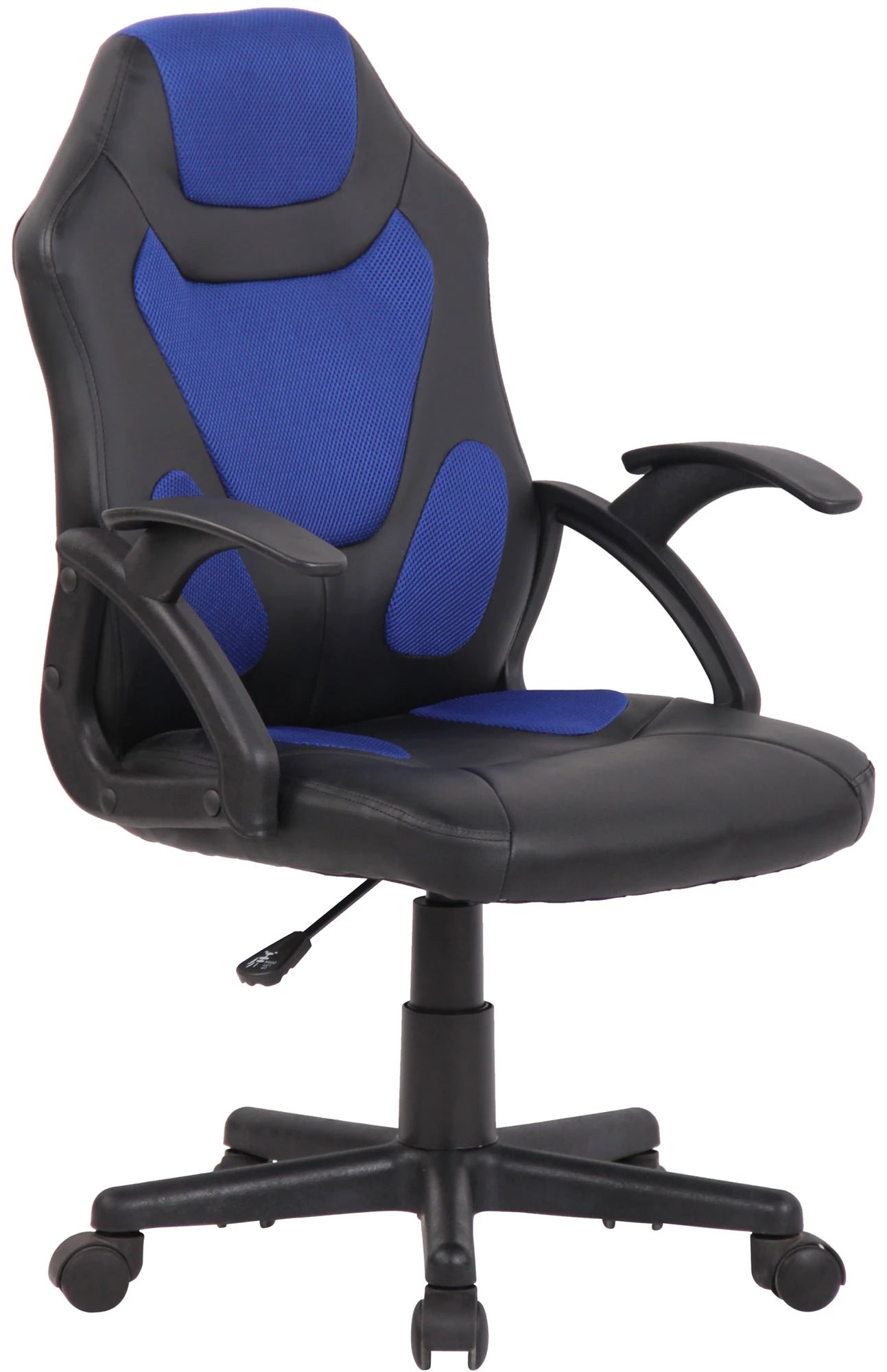 In And OutdoorMatch Kinderbürostuhl Elvin – Schwarz und Blau – Kunstleder – Hochwertige Polsterung – Bequem gepolstert – Schöne Optik