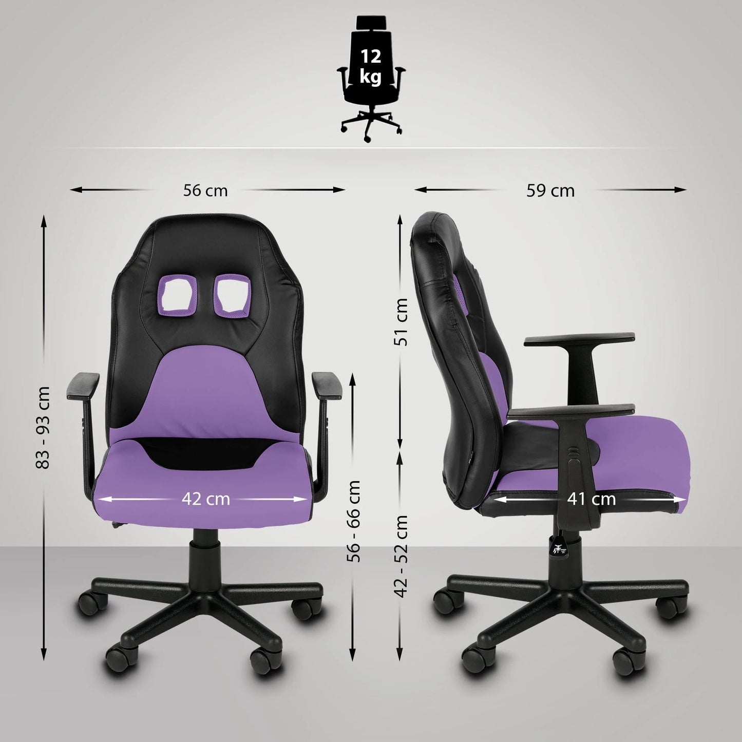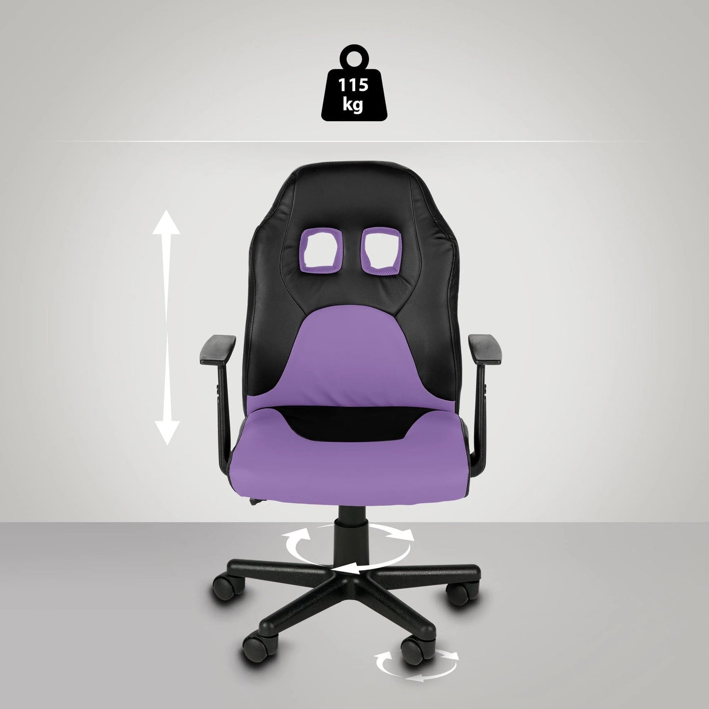 In And OutdoorMatch Kinderbürostuhl Kenna – Schwarz und Lila – Kunstleder – Hochwertige Polsterung – Bequem gepolstert – Schönes Aussehen