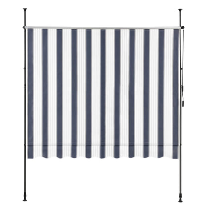 In And OutdoorMatch Klemmmarkise Kolo – Ausziehbare Markise – Dunkelblau und Weiß – 300 x 120 cm – Stahl und Stoff – wasserabweisend – UV-Schutz