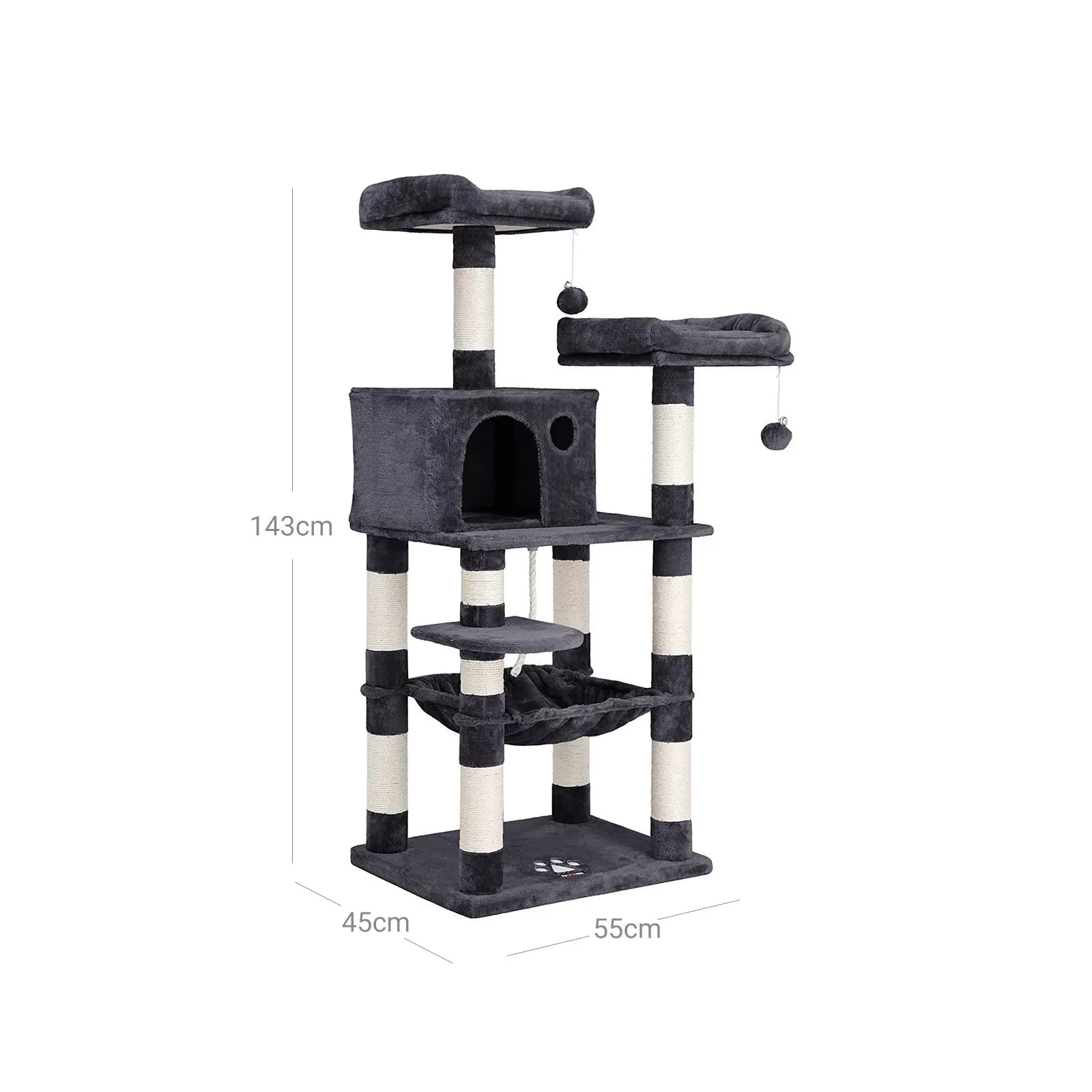 In And OutdoorMatch Kratzbaum Cleveland – 143 cm – Für Katzen – Rauchgrau – Weiche Katzenbett-Hängematte – Katzenspielzeug – Geeignet für kleine Kätzchen