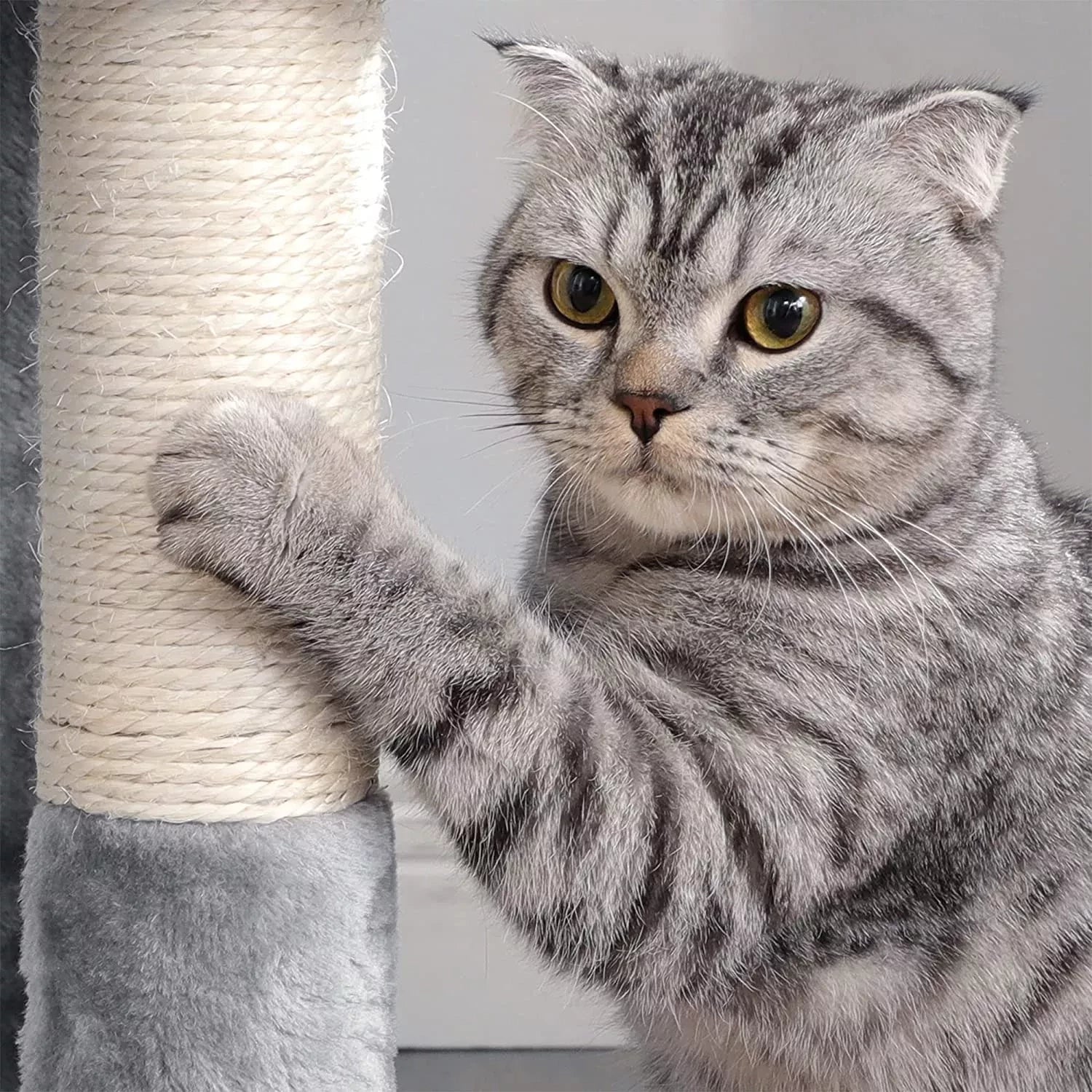 In And OutdoorMatch Kratzbaum Jean – 143 cm – Für Katzen – Grau – Weiche Katzenkorb-Hängematte – Katzenspielzeug – Geeignet für kleine Kätzchen