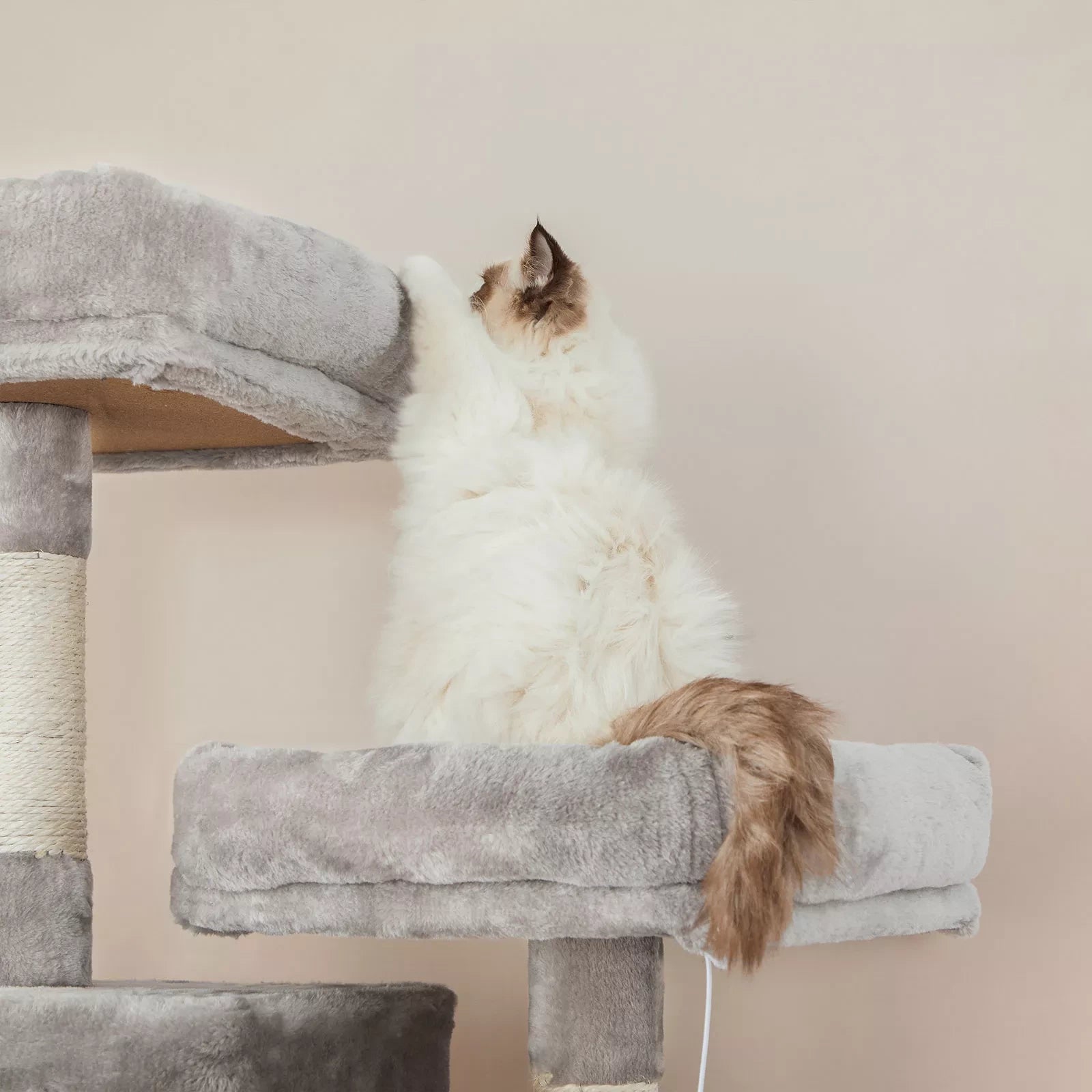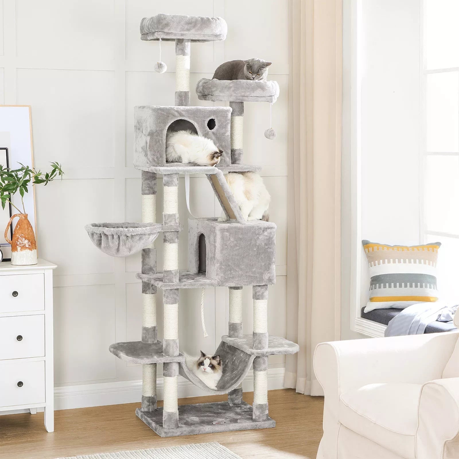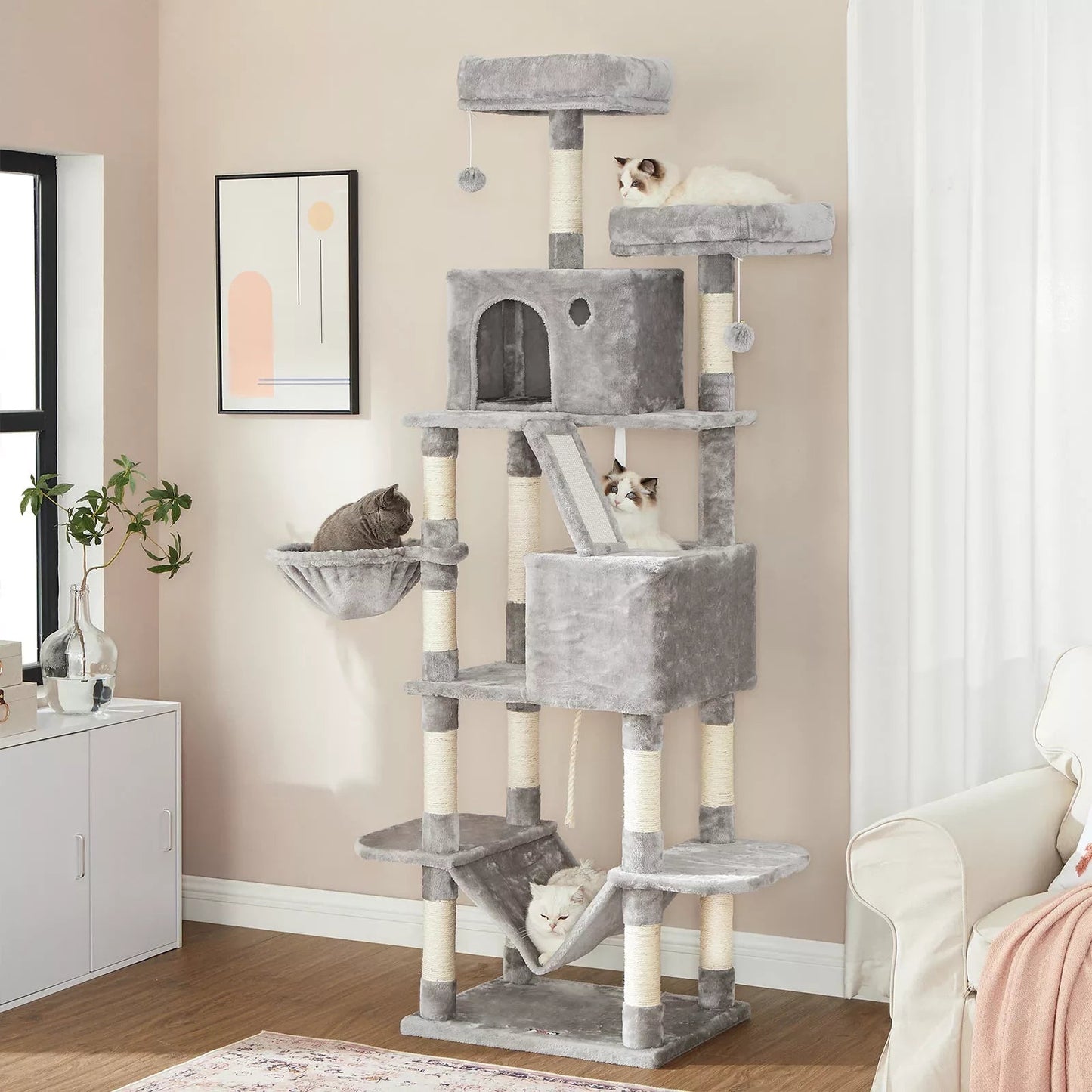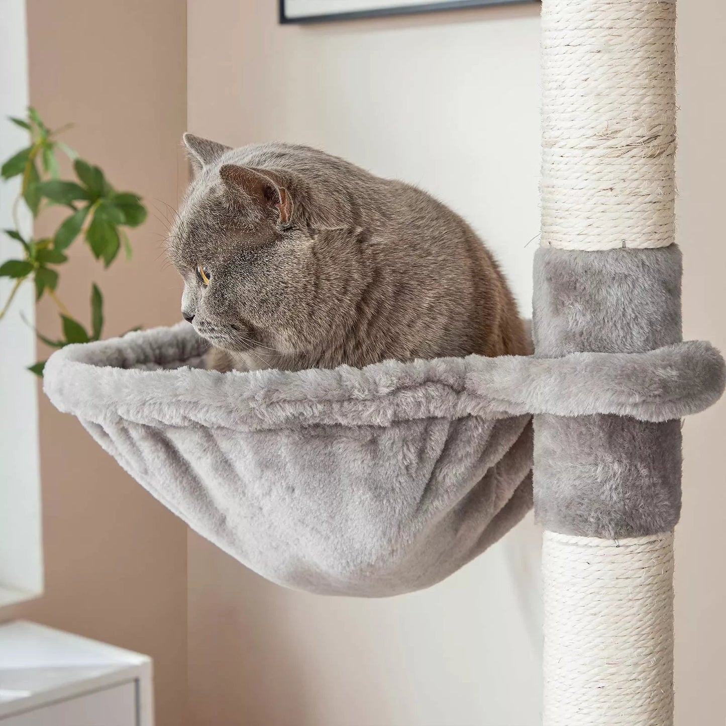 In And OutdoorMatch Kratzbaum XL Emerson – 206 cm – für Katzen – Rauchgrau – weiches Katzenbett – Hängematte – Katzenspielzeug – geeignet für kleine und große Kätzchen