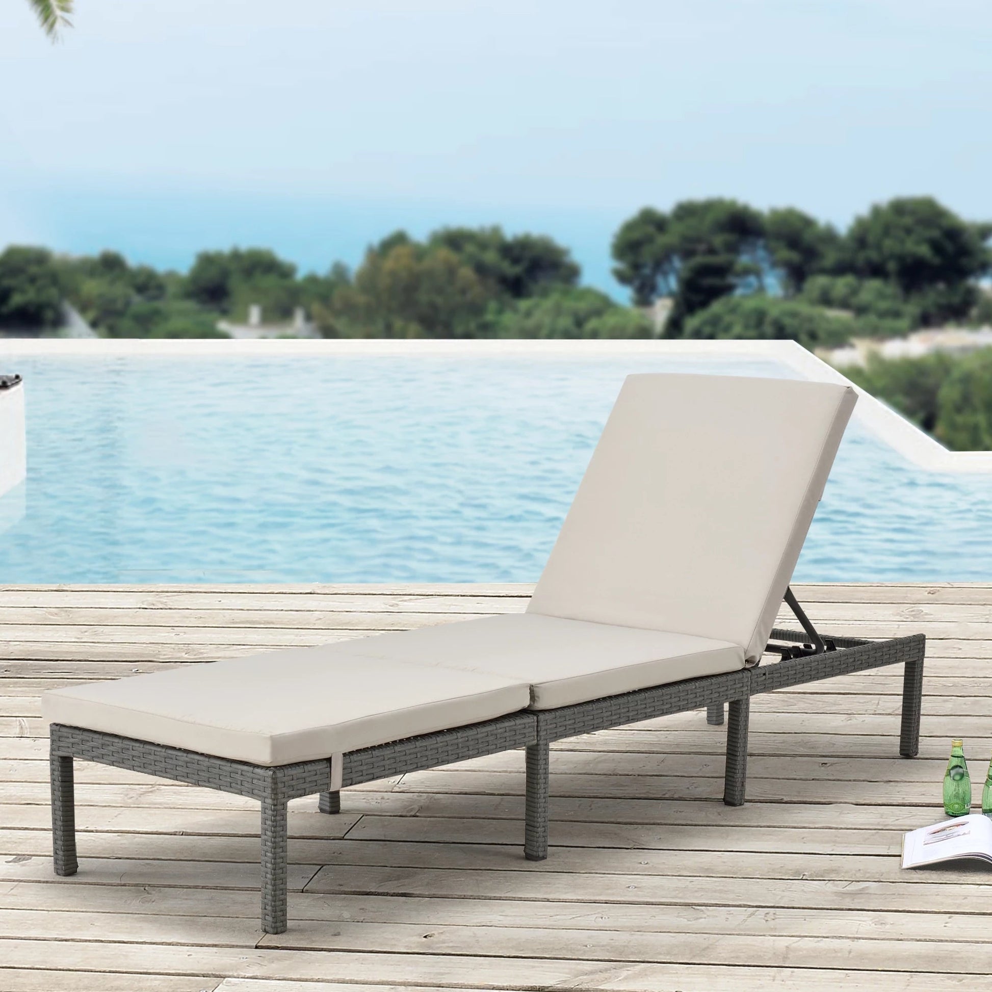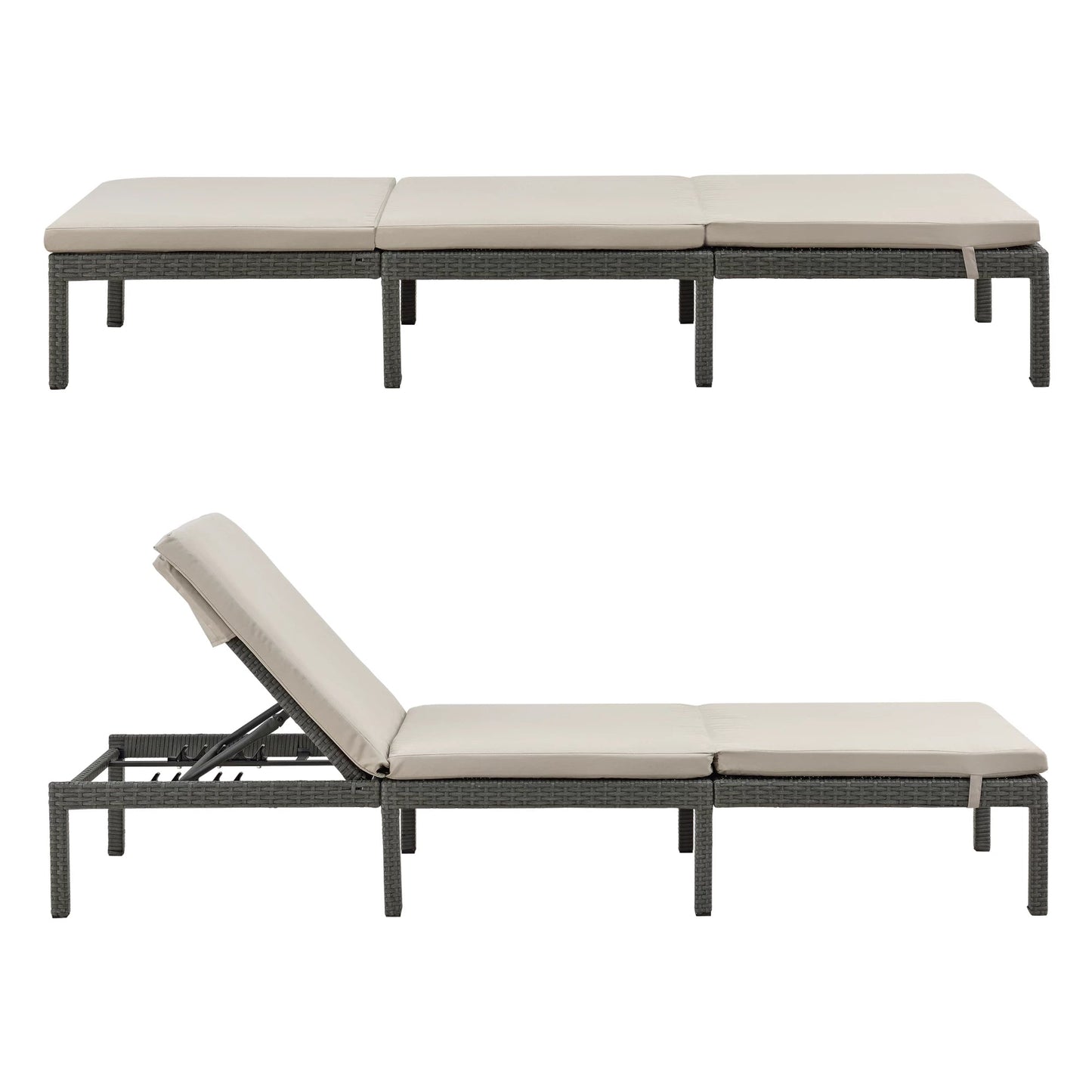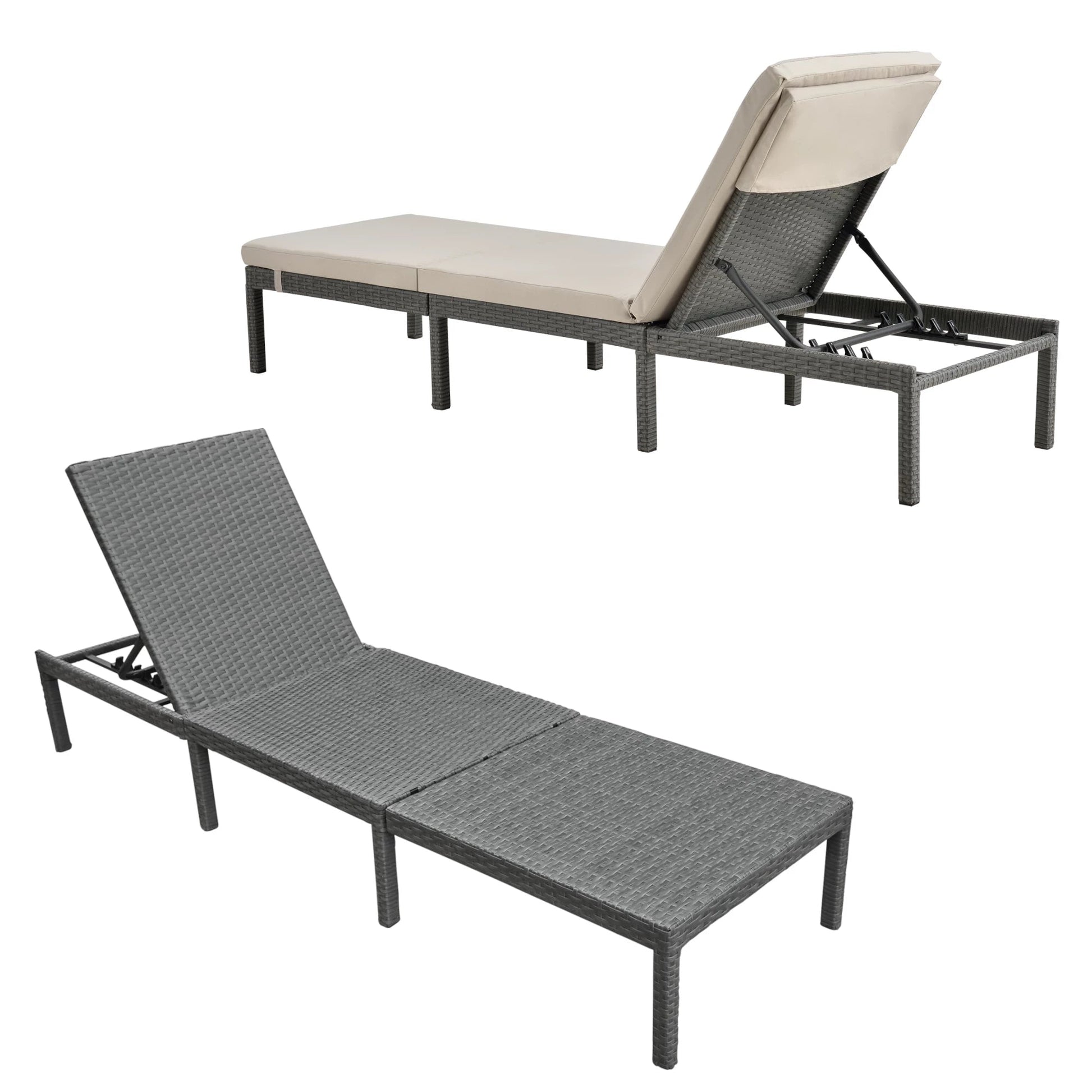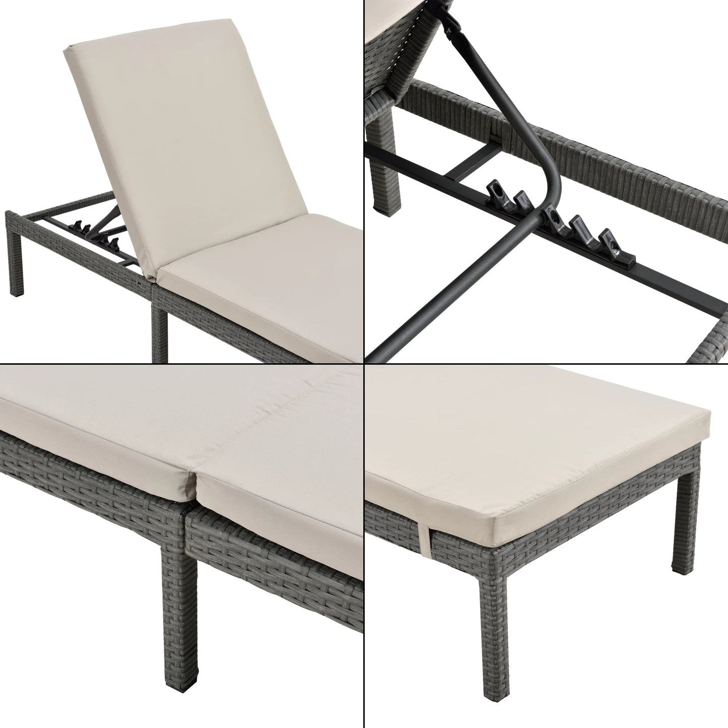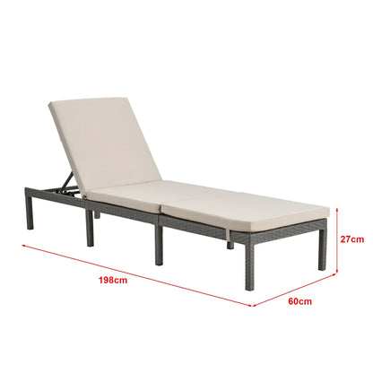 In And OutdoorMatch Liege Myles – Liege – Sonnenliege – 198 x 60 x 27 cm – Beige und Dunkelgrau – Stahl, Polyrattan und Stoff – verstellbare Rückenlehne