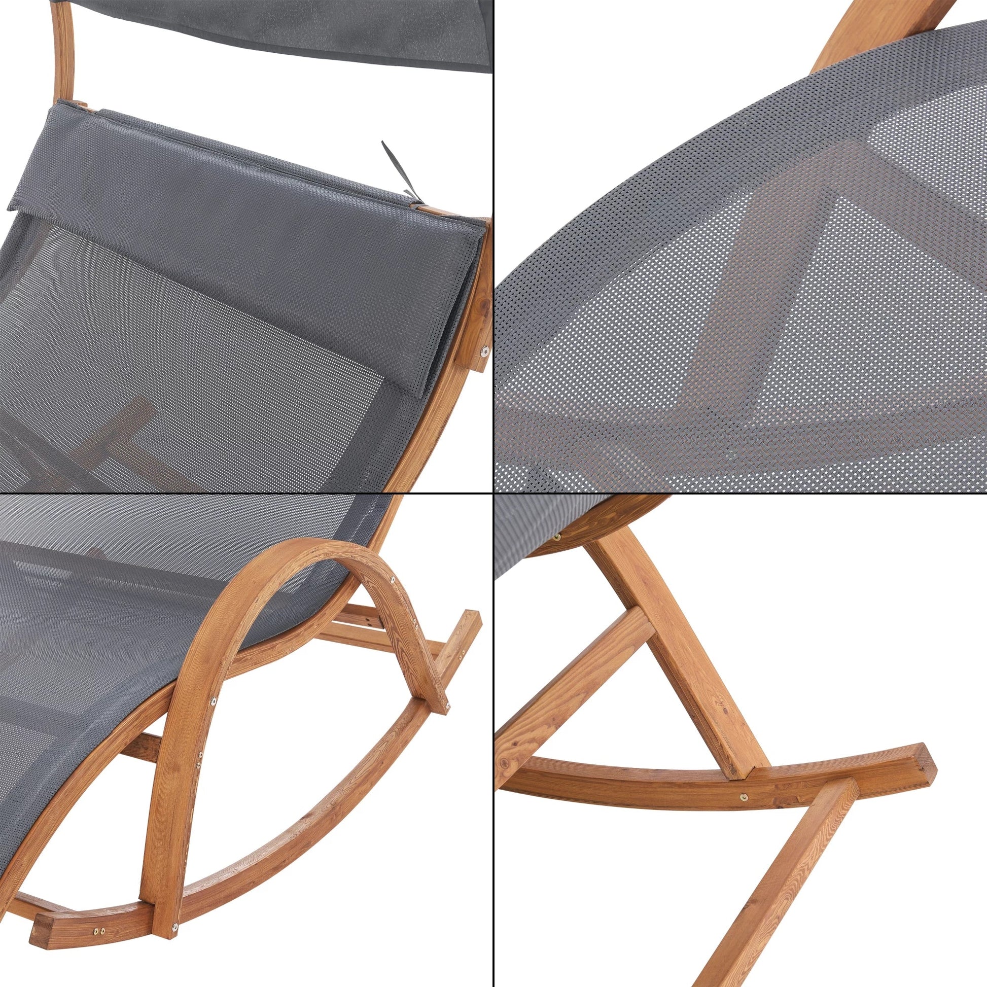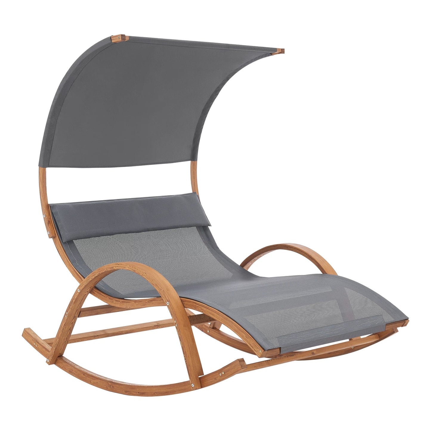In And OutdoorMatch Lounger Anika – Schaukelstuhl – Holzfarben und Dunkelgrau – Bequem – Stilvolles Design
