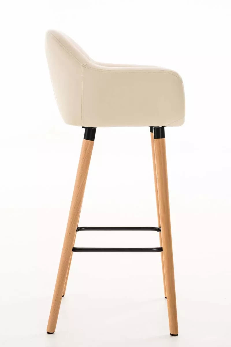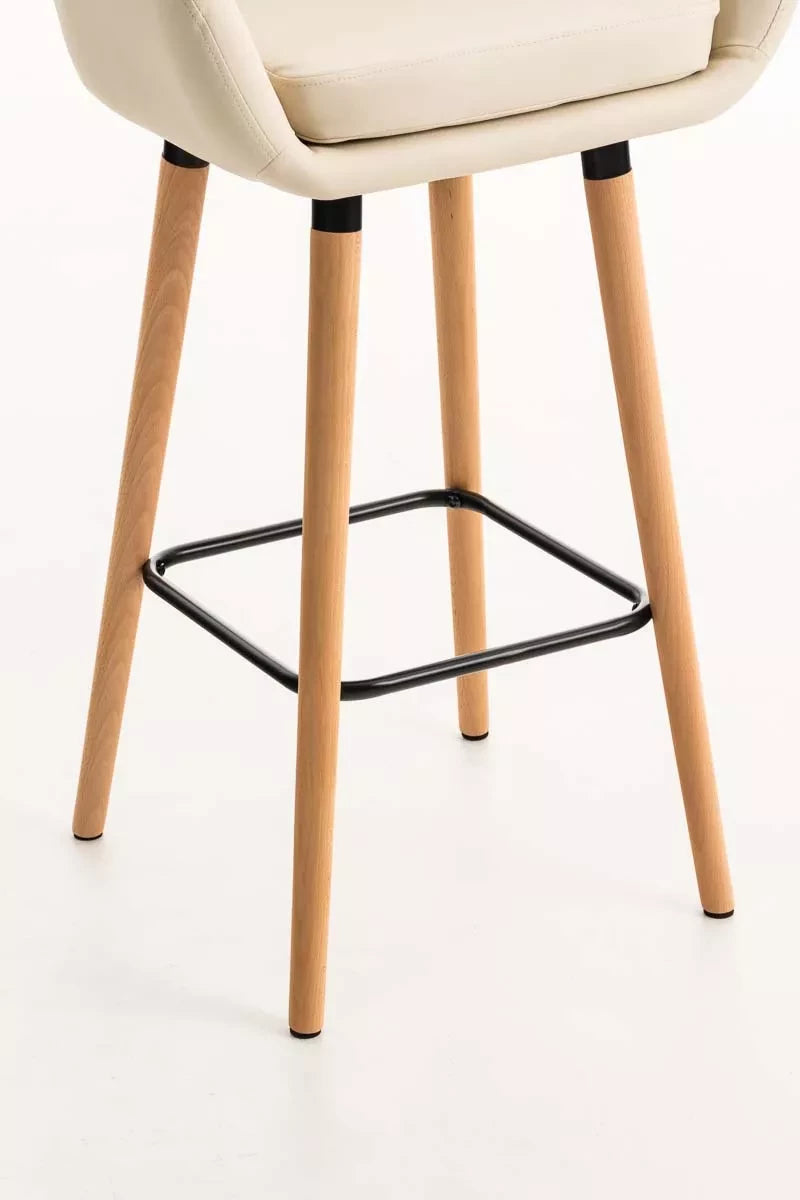 In And OutdoorMatch Luxus-Barhocker Bram – Beige – Kunstleder – 4-beiniges Gestell – Ergonomische Barstühle – 1er-Set – Mit Rückenlehne – Armlehne – Fußstütze – Für Küche und Bar – Gepolsterter Sitz