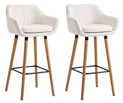 In And OutdoorMatch Luxus-Barhocker Litzy – Weiß – Holz – Modernes Design – 2er-Set – Rückenlehne – Fußstütze – Für Küche und Bar – Sitz gepolstert – Kunstleder