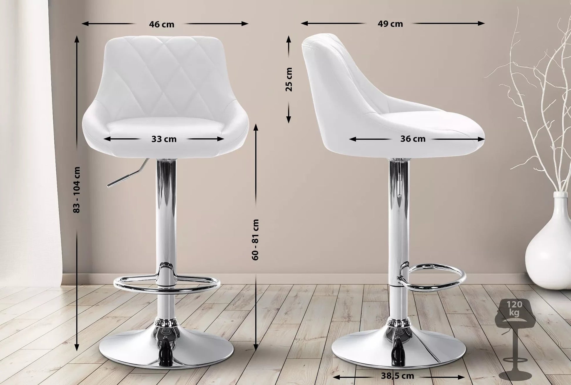 In And OutdoorMatch Luxus-Barhocker Moshe – Weiß – Kunstleder – Chrom – Ergonomische Barstühle – 1er-Set – Mit Rückenlehne – Fußstütze – Für Küche und Bar – Gepolsterter Sitz