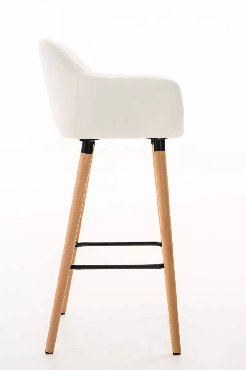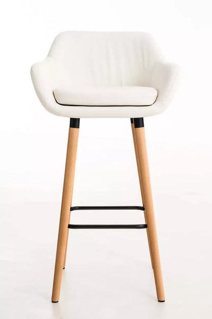 In And OutdoorMatch Luxus-Barhocker Victor – Weiß – Kunstleder – 4-beiniges Gestell – Ergonomische Barstühle – 1er-Set – Mit Rückenlehne – Armlehne – Fußstütze – Für Küche und Bar – Gepolsterter Sitz