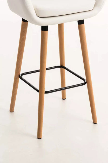 Dieser Barhocker verleiht jeder Bar das gewisse Extra. Als Lounge-Stuhl konzipiert, besticht dieser Hocker durch seine Optik. Dank der Rückenlehne und Form ist ein bequemes Sitzen über mehrere Stunden hinweg möglich. Die Sitzschale mit Kunstlederpolsterung und abnehmbarem Polster ist pflegeleicht und der Klettverschluss sorgt dafür, dass der Sitzbezug nicht verrutscht. Zudem lässt sich der Bezug des abnehmbaren Sitzkissens ganz einfach per Reißverschluss abnehmen. Das stabile Vierbeingestell aus Buchenholz verfügt über eine dezente Fußstütze aus Metall und rundet das Design dieses Barhockers ab. Ein absolutes Highlight für angenehme Stunden an der Bar.