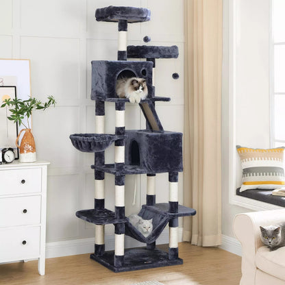 In And OutdoorMatch Luxus-Kratzbaum Elena – 206 cm – für Katzen – Schwarz – weiches Katzenbett – Hängematte – Katzenspielzeug – geeignet für kleine und große Kätzchen