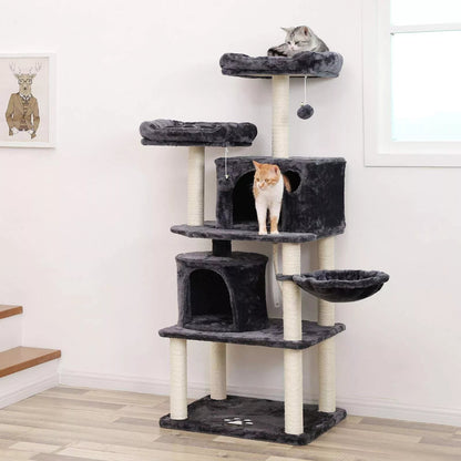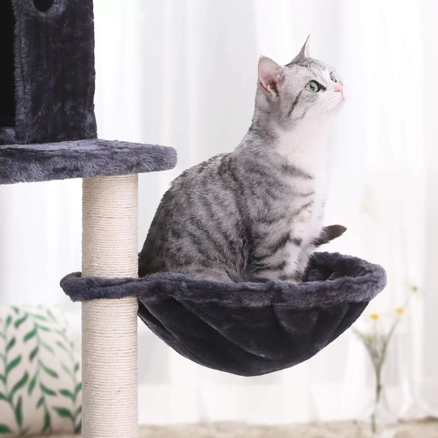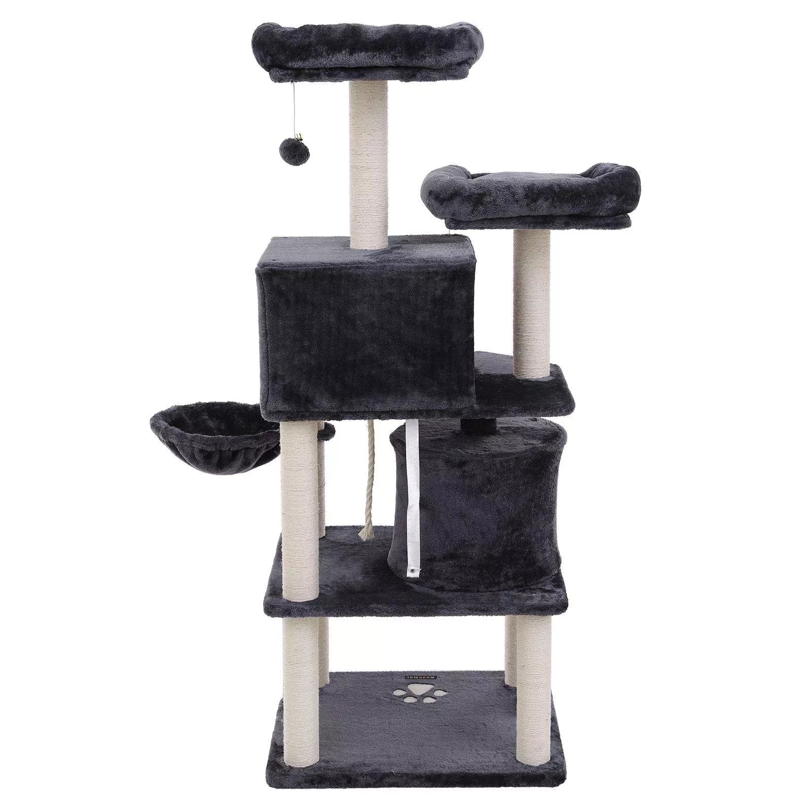 In And OutdoorMatch Luxus-Kratzbaum Gretchen – Für Katzen – 152 cm – Schwarz – Weiche Katzenbett-Hängematte – Katzenspielzeug – Geeignet für kleine Kätzchen