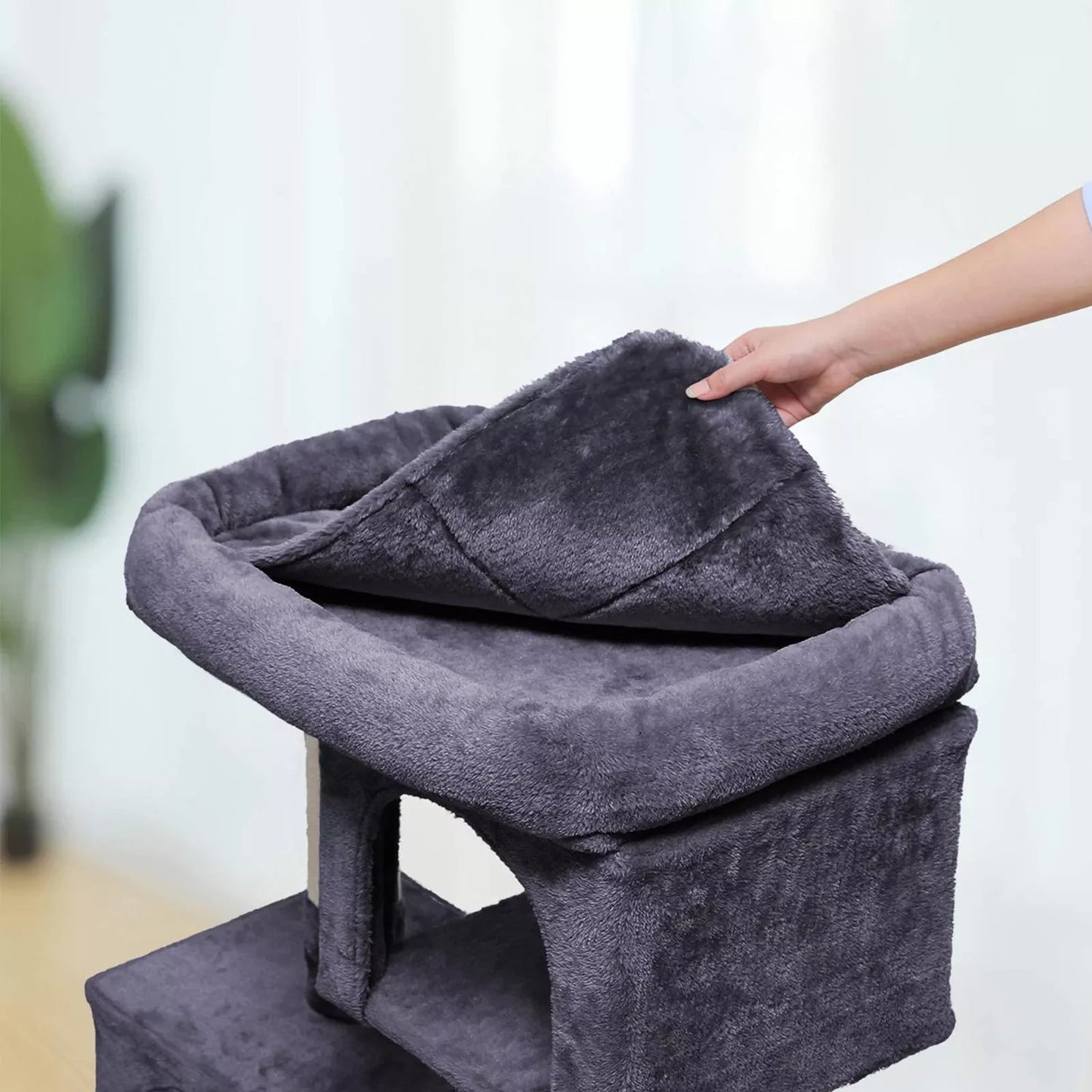Inandoutdormatch-Kratzbäume verfügen über alle Funktionen, die Sie zum Gedeihen Ihrer Katzen benötigen. ENTSPANNEN – Die vergrößerte Oberfläche mit erhöhtem Rand sorgt für ein luxuriöses Liegeerlebnis. KRATZEN – Starke, mit natürlichem Sisalseil überzogene Pfosten ermöglichen Katzen das Kratzen und Strecken ihrer Krallen. Nickerchen machen Dank der beiden Höhlen können Ihre Katzen endlich in ihr eigenes Bett kriechen und sich ruhig verhalten. Neben all dem Spaß ist auch die Sicherheit Ihrer Haustiere garantiert. Der Boden ist mit Lamellen verstärkt, um Stabilität zu gewährleisten; Im Lieferumfang ist auch Kippschutzmaterial enthalten, sodass Sie den Kratzbaum an der Wand befestigen können. Ob Sie Kätzchen, Großkatzen oder ältere Katzen haben, dieser Kratzbaum ist ein wunderbares Zuhause für Ihre pelzigen Freunde.