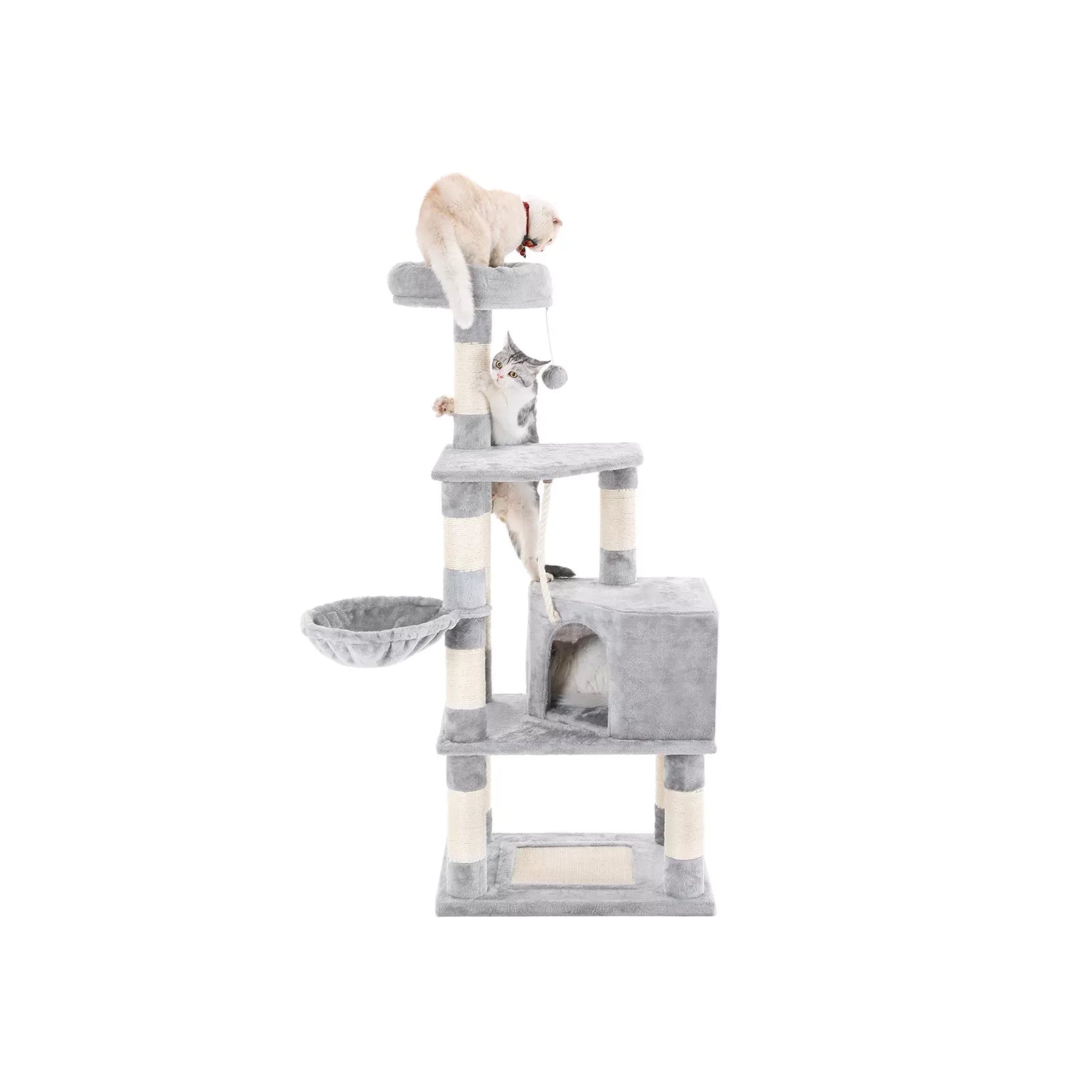 In And OutdoorMatch Luxus-Kratzbaum Katlynn – Für Katzen – 138 cm – Grau – Weiche Katzenbett-Hängematte – Katzenspielzeug – Geeignet für kleine Kätzchen – Muttertagsgeschenk