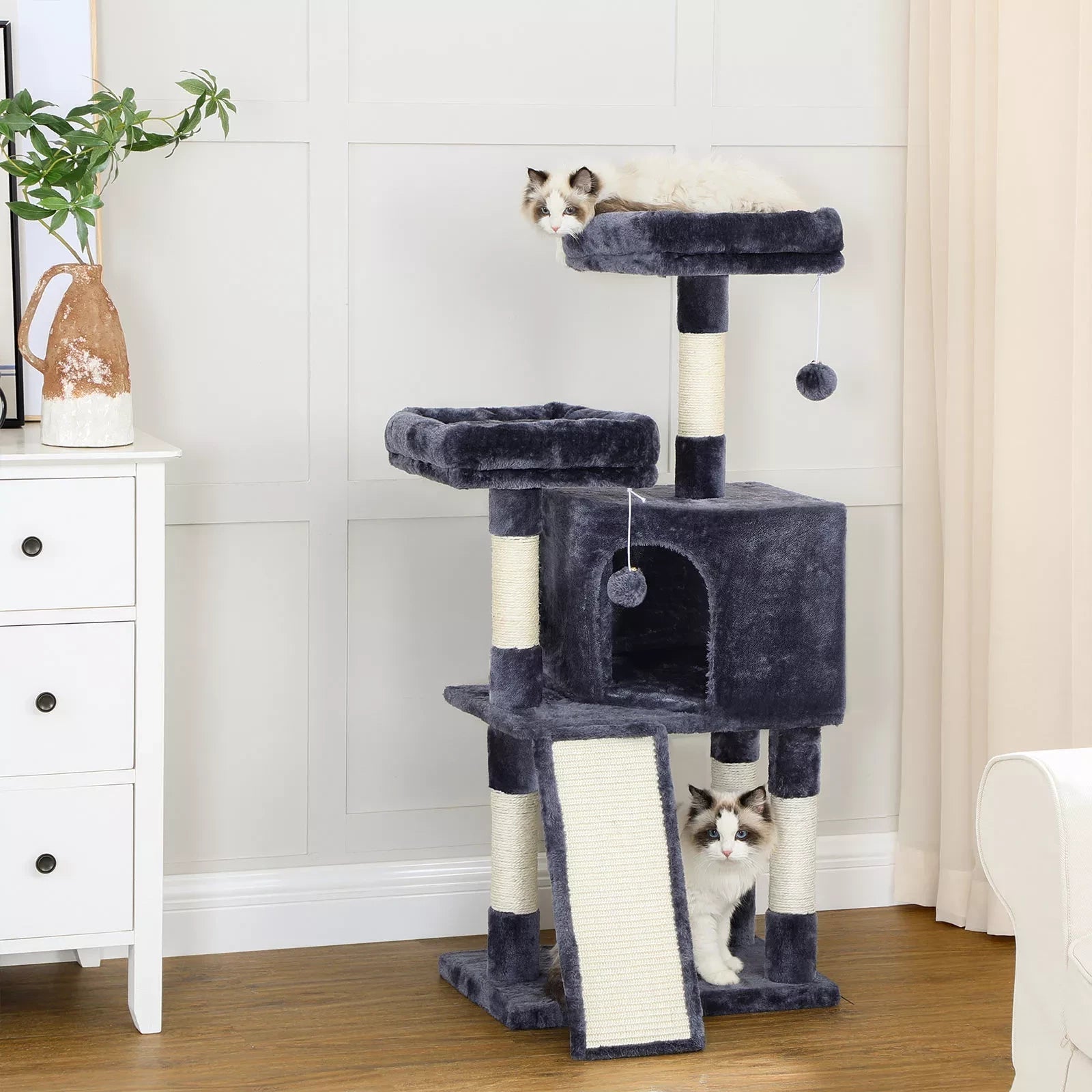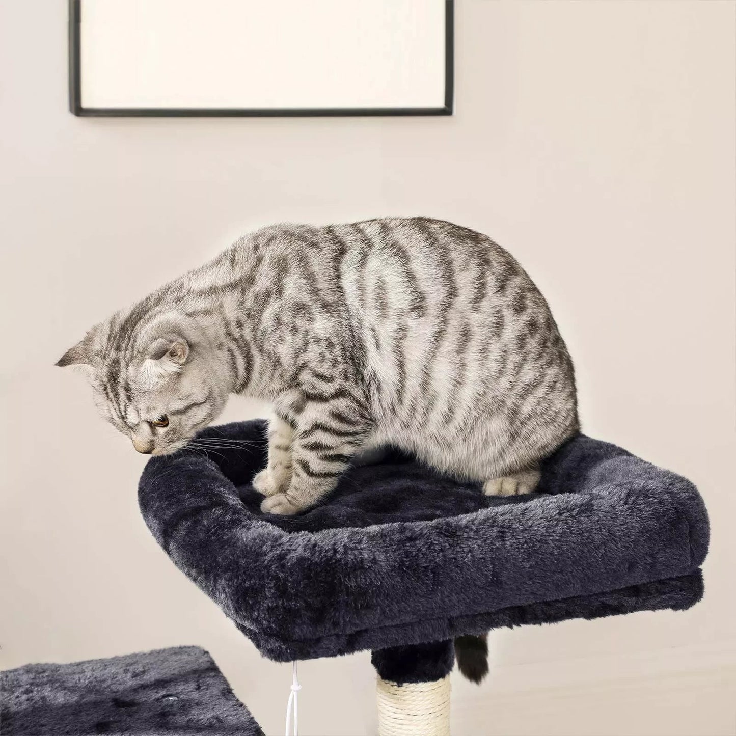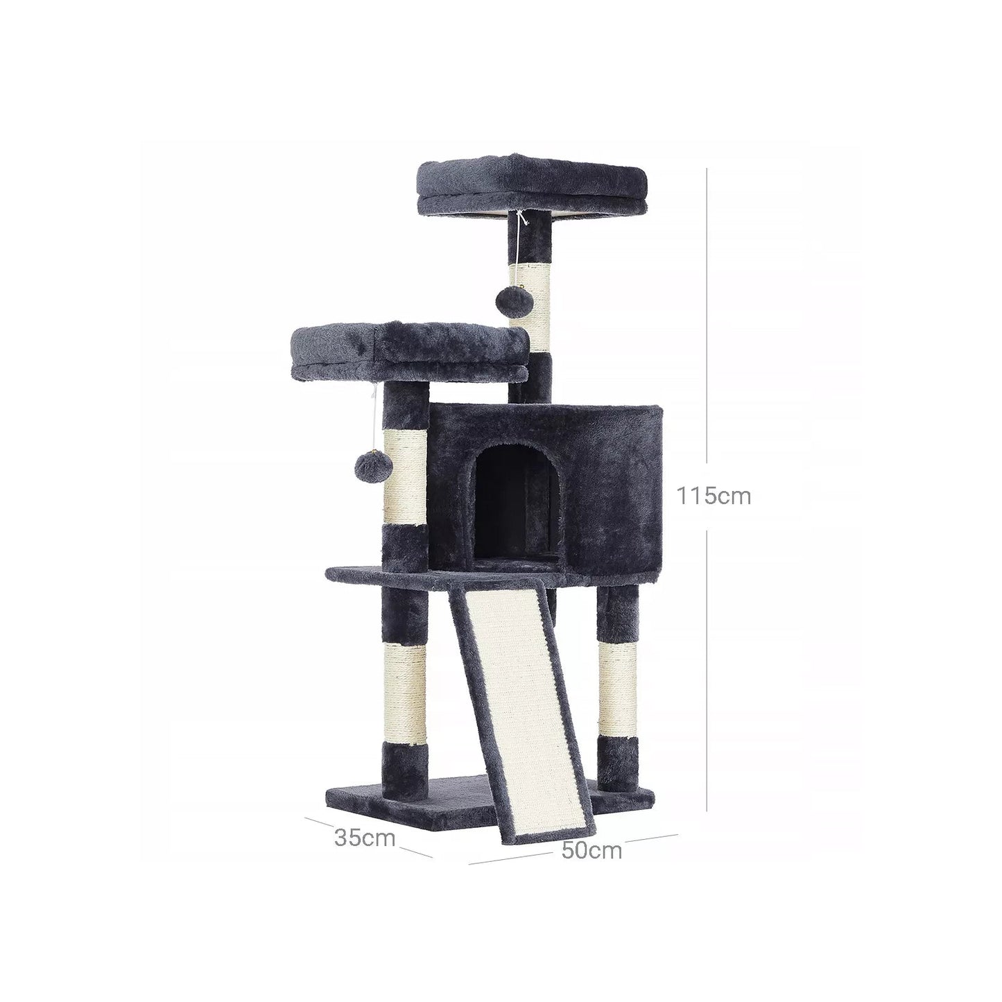 In And OutdoorMatch Luxus-Kratzbaum Milo – 50 x 35 x 115 cm – für Katzen – Grau – weiches Katzenbett – Hängematte – Katzenspielzeug – geeignet für kleine und große Kätzchen