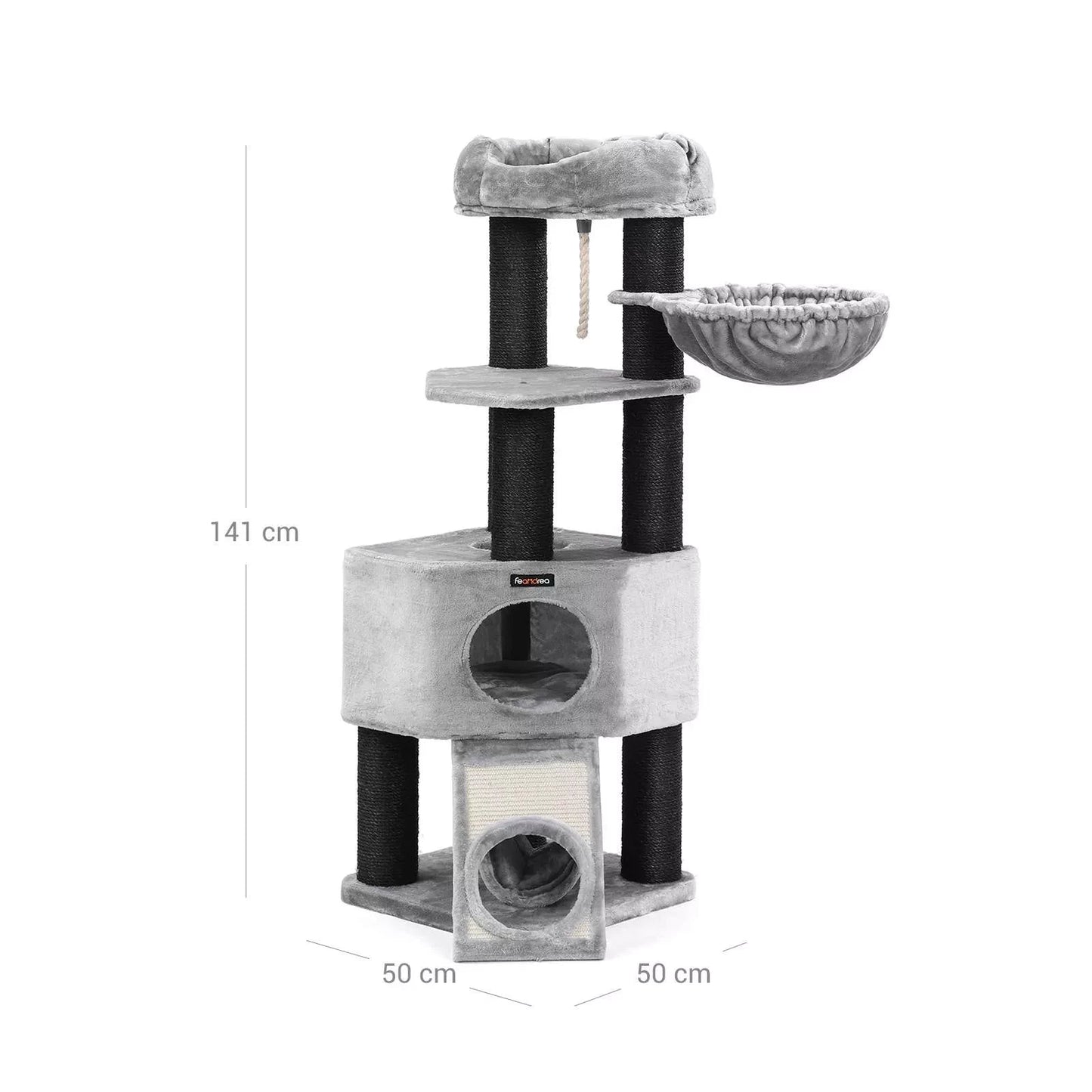 In And OutdoorMatch Luxuriöser Kratzbaum für Katzen Ilovo – Grau – Weiche Katzenbett-Hängematte – Katzenspielzeug – Geeignet für kleine Kätzchen – 141 x 50 x 141 cm