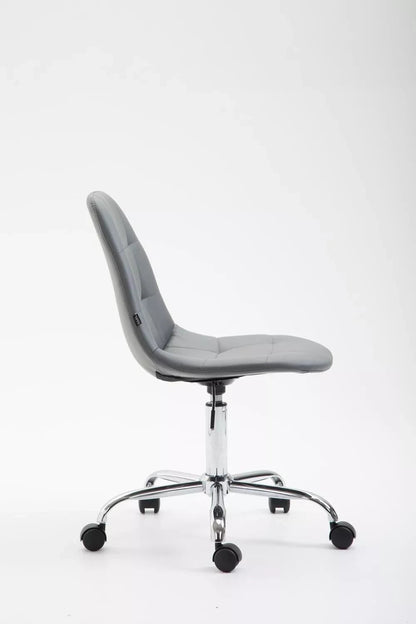 Der Bürostuhl überzeugt durch seine bequeme Polsterung und eine schlanke, runde Optik. Rechteckige Ziernähte und leuchtende Farbvarianten machen den Bürostuhl zu einem optischen Highlight an jedem Arbeitsplatz. Die filigrane Sitzfläche ist mit Kunstleder bezogen und ergonomisches Sitzen ist durch eine stufenlos verstellbare Sitzhöhe gewährleistet. Er steht sicher auf fünf leichtgängigen Rollen und einem Metallgestell in Chromoptik. Dank seines praktischen Designs eignet er sich auch für kleinere Räume und ist flexibel einsetzbar. Egal ob Hartboden oder Teppich, Sie rollen immer leicht und locker über den Boden.