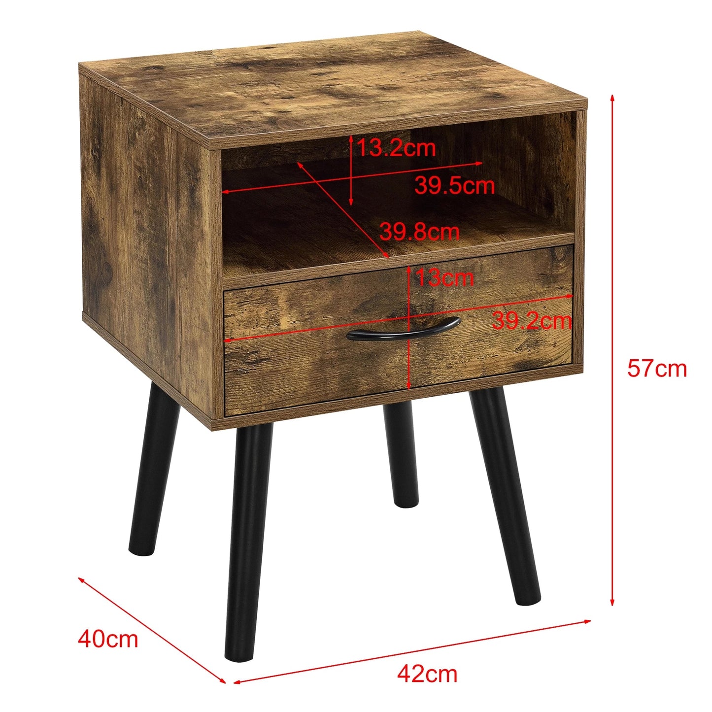 Der stilvolle Nachttisch oder Beistelltisch mit Schublade und offenem Fach ist eine ideale Wahl für Ihr Schlafzimmer oder Wohnzimmer.