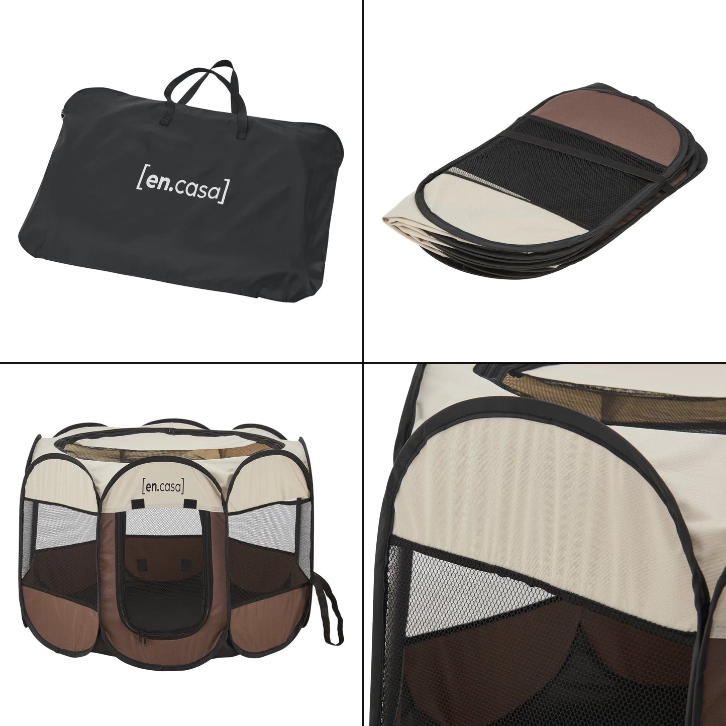 Das Welpengehege bietet Ihrem Vierbeiner ausreichend Platz zum Schlafen und Toben. Zudem lässt es sich platzsparend zusammenfalten und somit schnell und einfach transportieren.