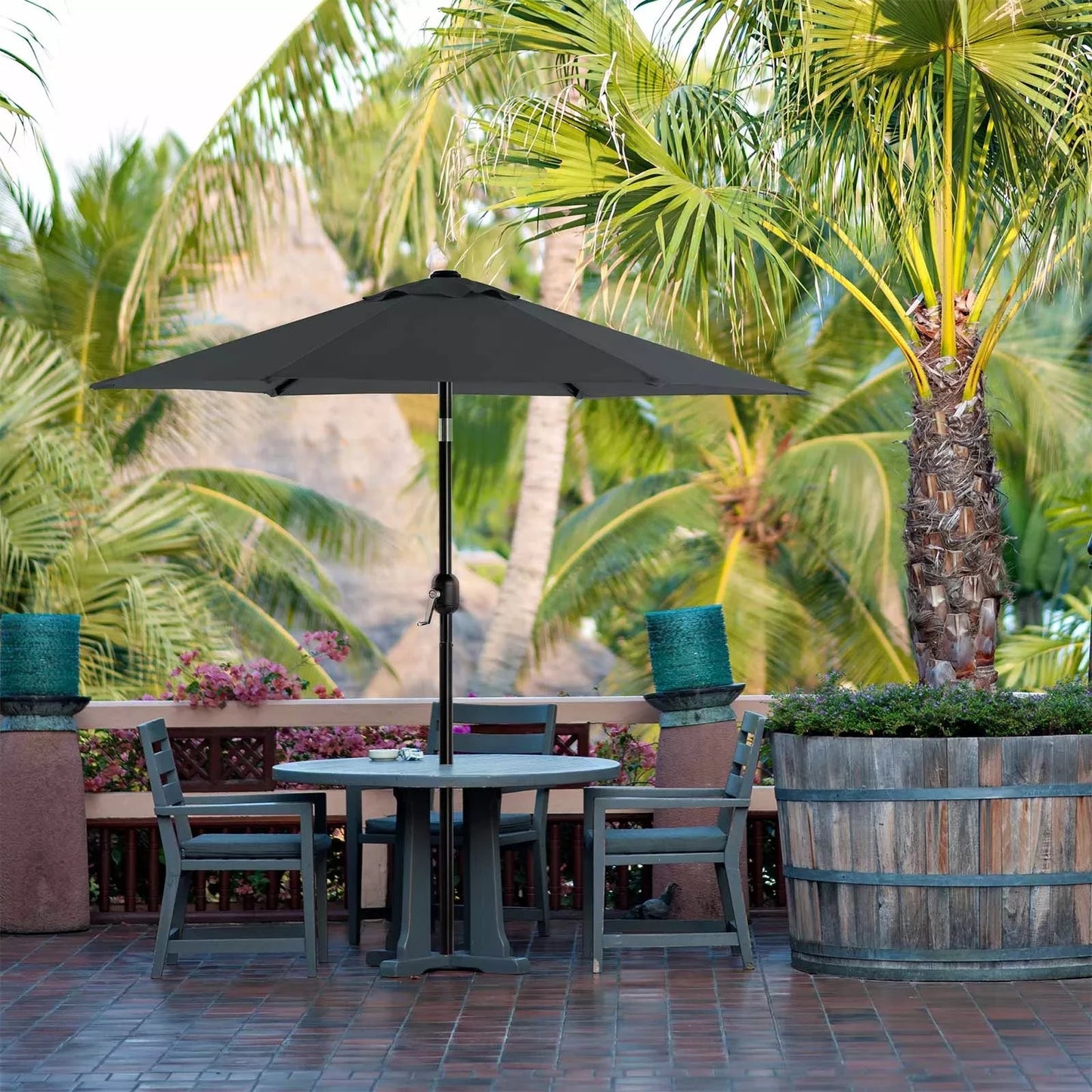 In And OutdoorMatch Sonnenschirm Earnestine – 270 cm – Gartenschirm – Marktschirm – UV-Schutz bis UPF 50+ – Terrassenschirm – Sonnenschutz – Gelenkarm – Mit Kurbel – Ohne Ständer – Schwarz