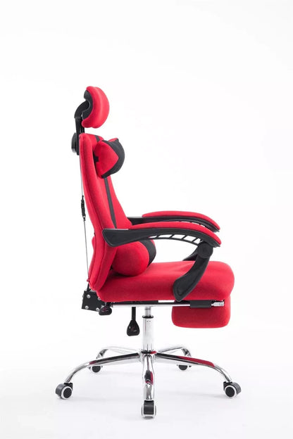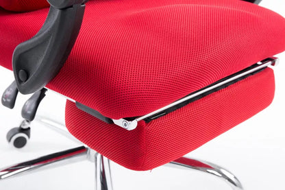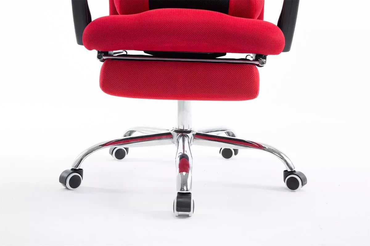 In puncto Komfort lässt der Bürostuhl keine Wünsche offen, denn eine integrierte Fußstütze und eine höhenverstellbare Kopfstütze sorgen für Komfort auf ganzer Linie. Fußstütze und Kopfstütze können in verschiedenen Positionen platziert und ganz einfach an die eigenen Wünsche angepasst werden. Darüber hinaus ist ergonomisches Sitzen durch die stufenlos verstellbare Sitzhöhe jederzeit gewährleistet. Der eingebaute Wippmechanismus sorgt zudem für mehr Bewegungsfreiheit und Flexibilität. Die hochwertige Polsterung und der pflegeleichte Stoffbezug in Mesh-Optik überzeugen zudem durch ihre lange Lebensdauer. Der Bürostuhl steht sicher auf fünf leichtgängigen Rollen und einem Metallgestell in Chromoptik. Egal ob Hartboden oder Teppich, Sie rollen immer leicht und locker über den Boden.
