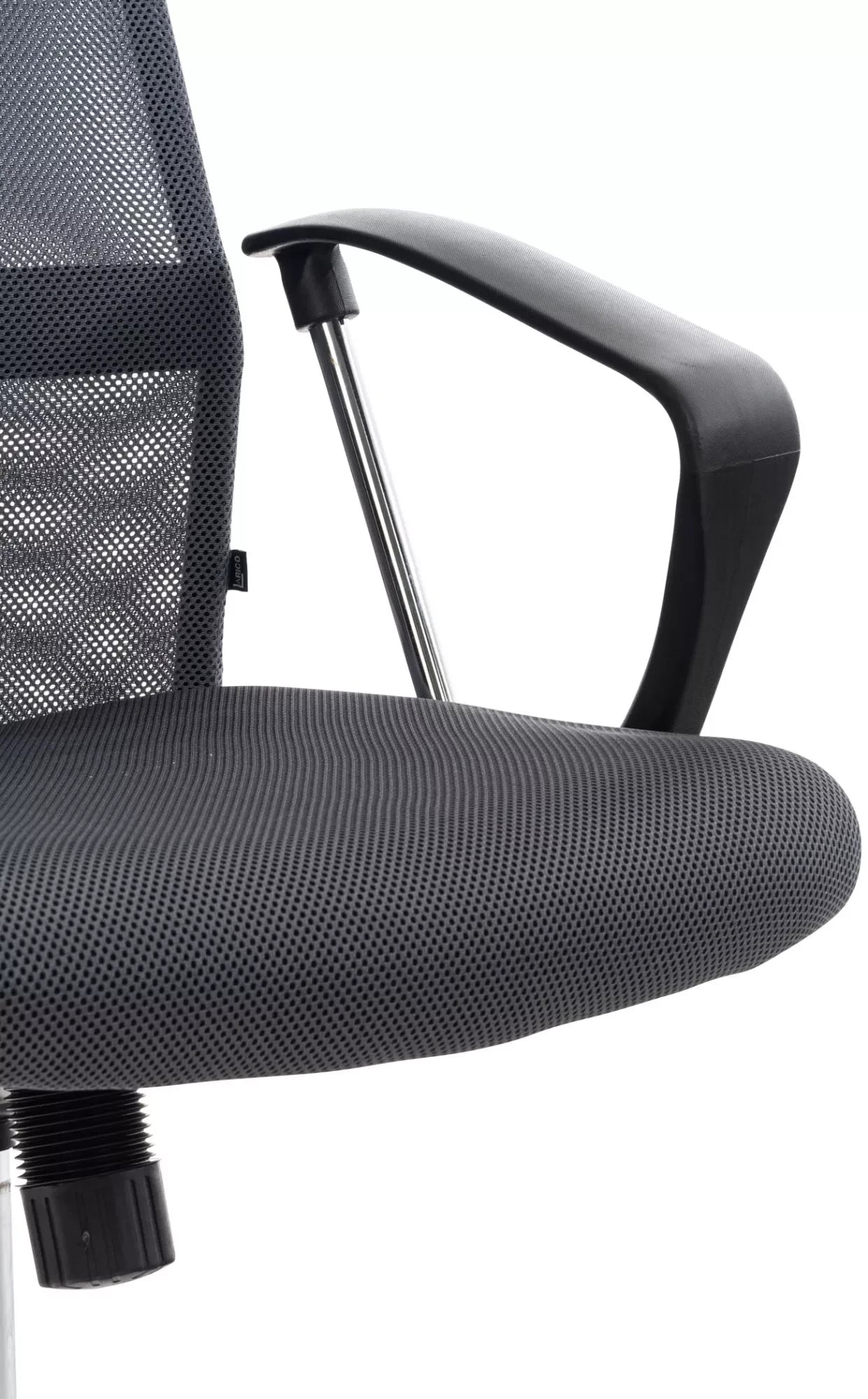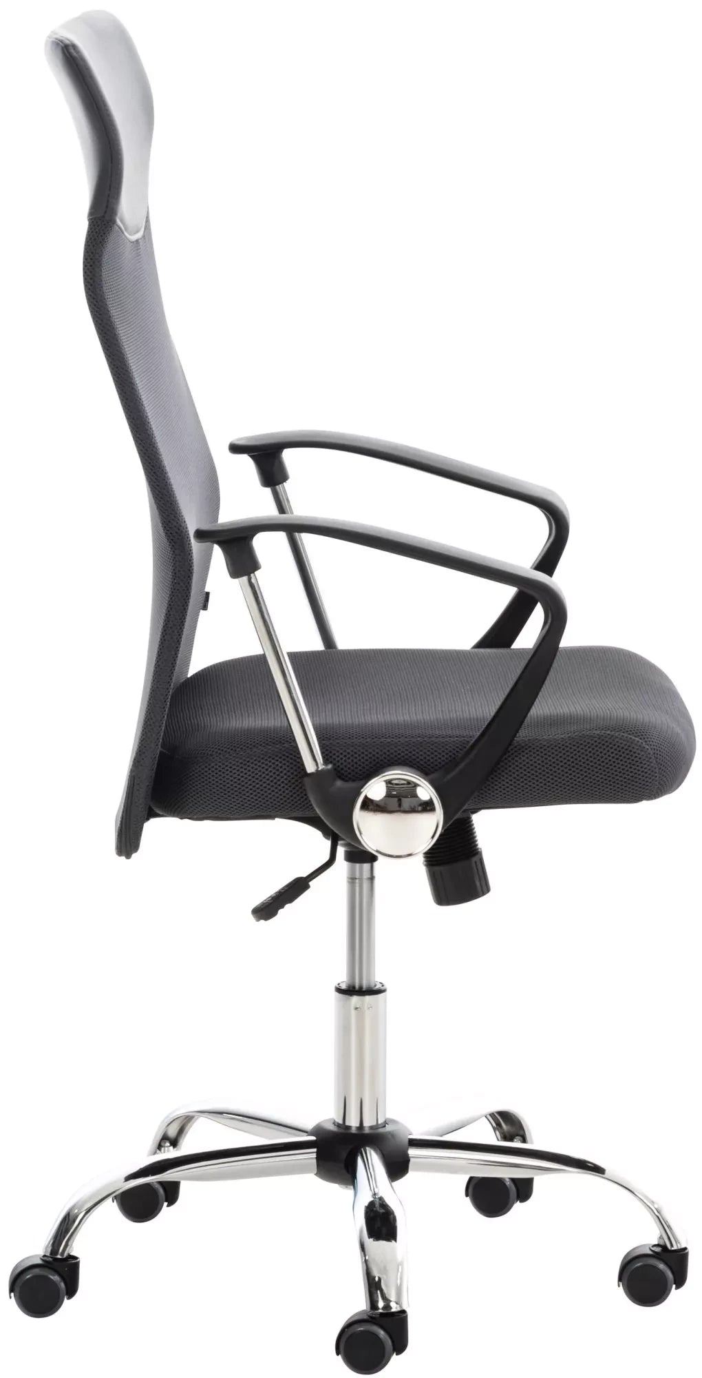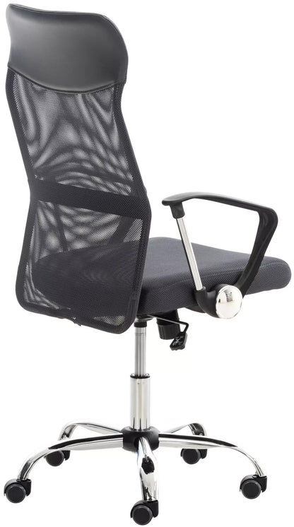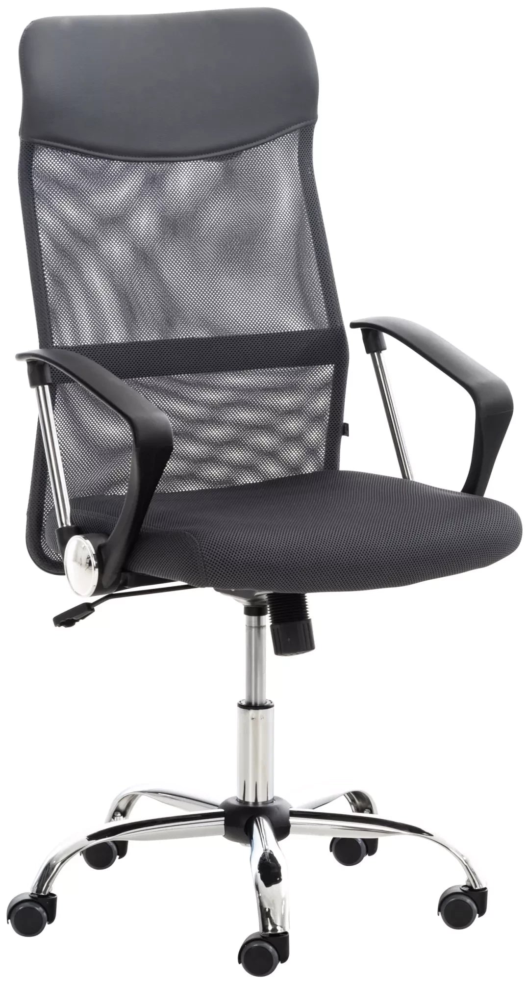 Dieser hochwertige Bürostuhl im schlichten, eleganten Design ist mit einem Netzbezug bezogen. Der Bezug ist atmungsaktiv, was bei hohen Temperaturen von Vorteil sein kann. Dank der verstellbaren Sitzhöhe und bequem gepolsterten Armlehnen ist ergonomisches Sitzen gewährleistet. Die Sitzhöhe ist mit dem Hebel unter dem Sitz stufenlos verstellbar. Das Metallgestell ist verchromt und sehr stabil, die fünf robusten Leichtlaufräder sorgen für zusätzliche Stabilität, sodass Sie sowohl über Hart- als auch Teppichböden leicht und locker rollen können.