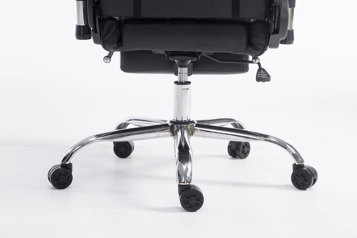 Der Bürostuhl im attraktiven, sportlichen Design vereint Funktionalität und Komfort bestmöglich. Der angenehm gepolsterte Sitz mit Kunstlederpolsterung und die beiden abnehmbaren Nacken- und Rückenkissen sorgen nicht nur für eine gesunde Sitzposition, sondern auch für langfristigen Komfort. Höhenverstellbare, schwenkbare Armlehnen und individuelle Einstellmöglichkeiten garantieren ein angenehmes Sitzgefühl, das auch bei längerer Nutzung erhalten bleibt. Für eine angenehme Pause zwischendurch sorgt auch die leicht verstellbare Rückenlehne, denn sogar eine horizontale Position ist möglich. Der Bürostuhl steht sicher auf fünf leichtgängigen Rollen und einem Metallgestell in Chromoptik.