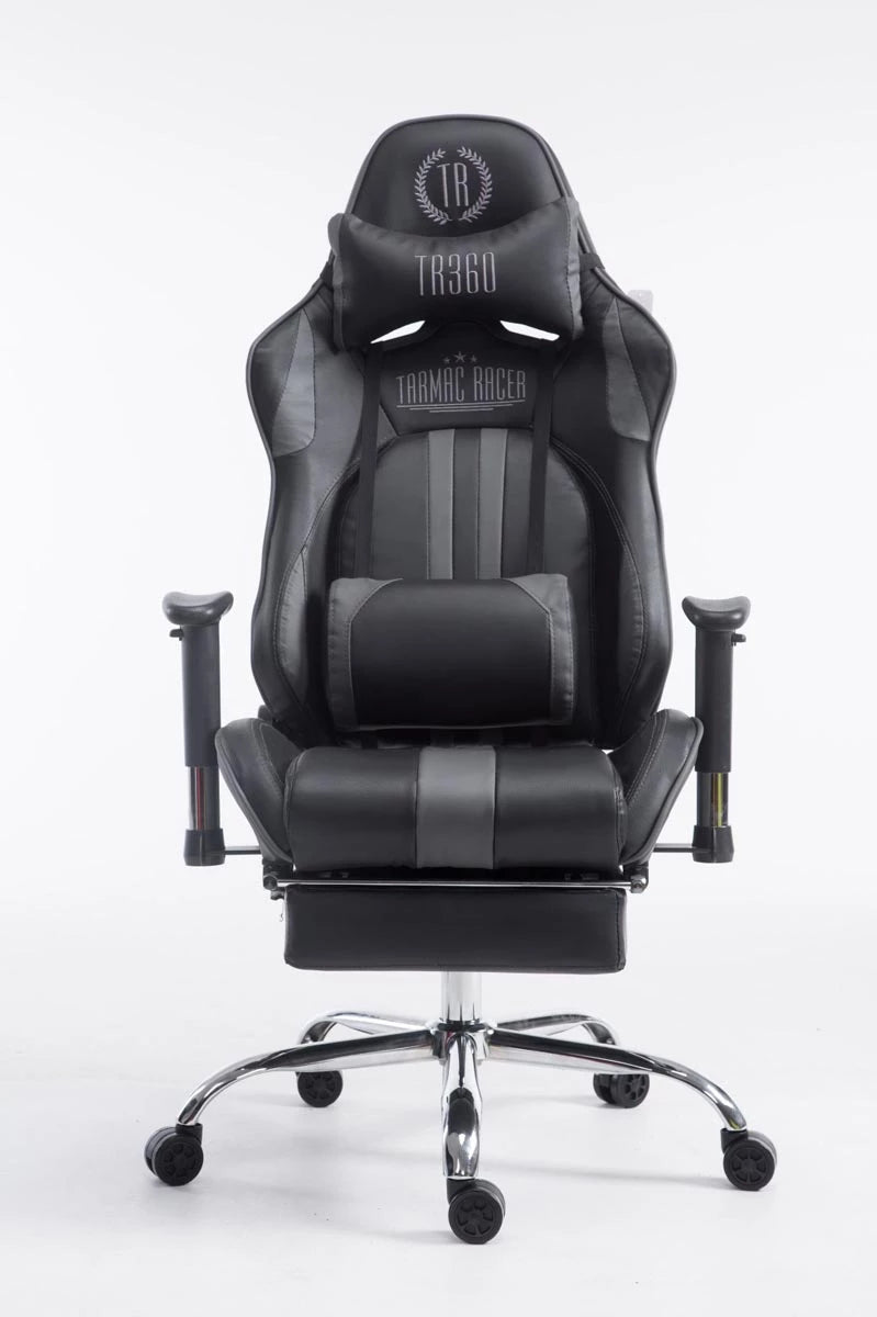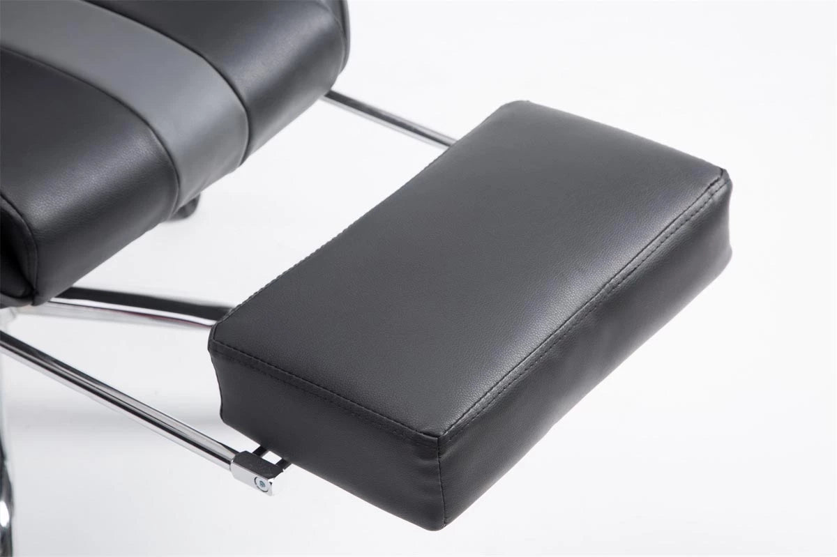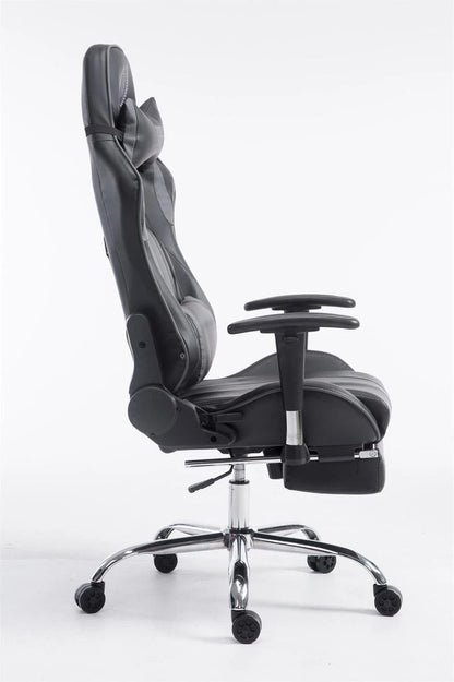 Der Bürostuhl im attraktiven, sportlichen Design vereint Funktionalität und Komfort bestmöglich. Der angenehm gepolsterte Sitz mit Kunstlederpolsterung und die beiden abnehmbaren Nacken- und Rückenkissen sorgen nicht nur für eine gesunde Sitzposition, sondern auch für langanhaltenden Komfort. Höhenverstellbare, schwenkbare Armlehnen und individuelle Einstellmöglichkeiten garantieren ein angenehmes Sitzgefühl, das auch bei längerer Nutzung erhalten bleibt. Für eine angenehme Pause zwischendurch sorgt auch die leicht verstellbare Rückenlehne, denn sogar eine horizontale Position ist möglich. Der Bürostuhl steht sicher auf fünf leichtgängigen Rollen und einem Metallgestell in Chromoptik.