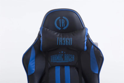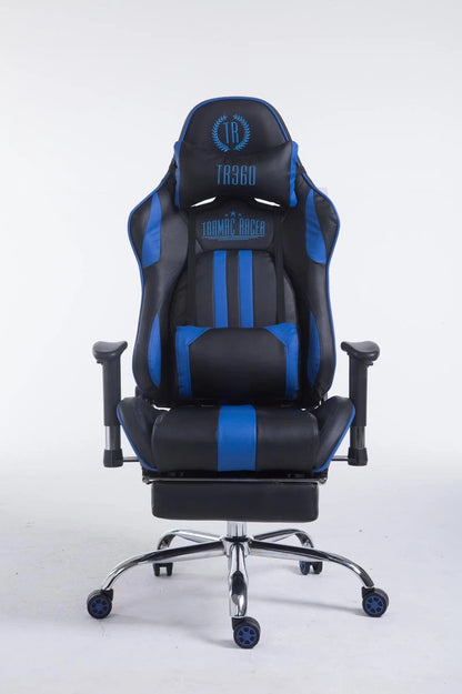 In And OutdoorMatch Racing Bürostuhl Micheal – Blau und Schwarz – Kunstleder – Fußstütze – Hochwertige Polsterung – Bequem gepolstert – Luxuriöses Erscheinungsbild
