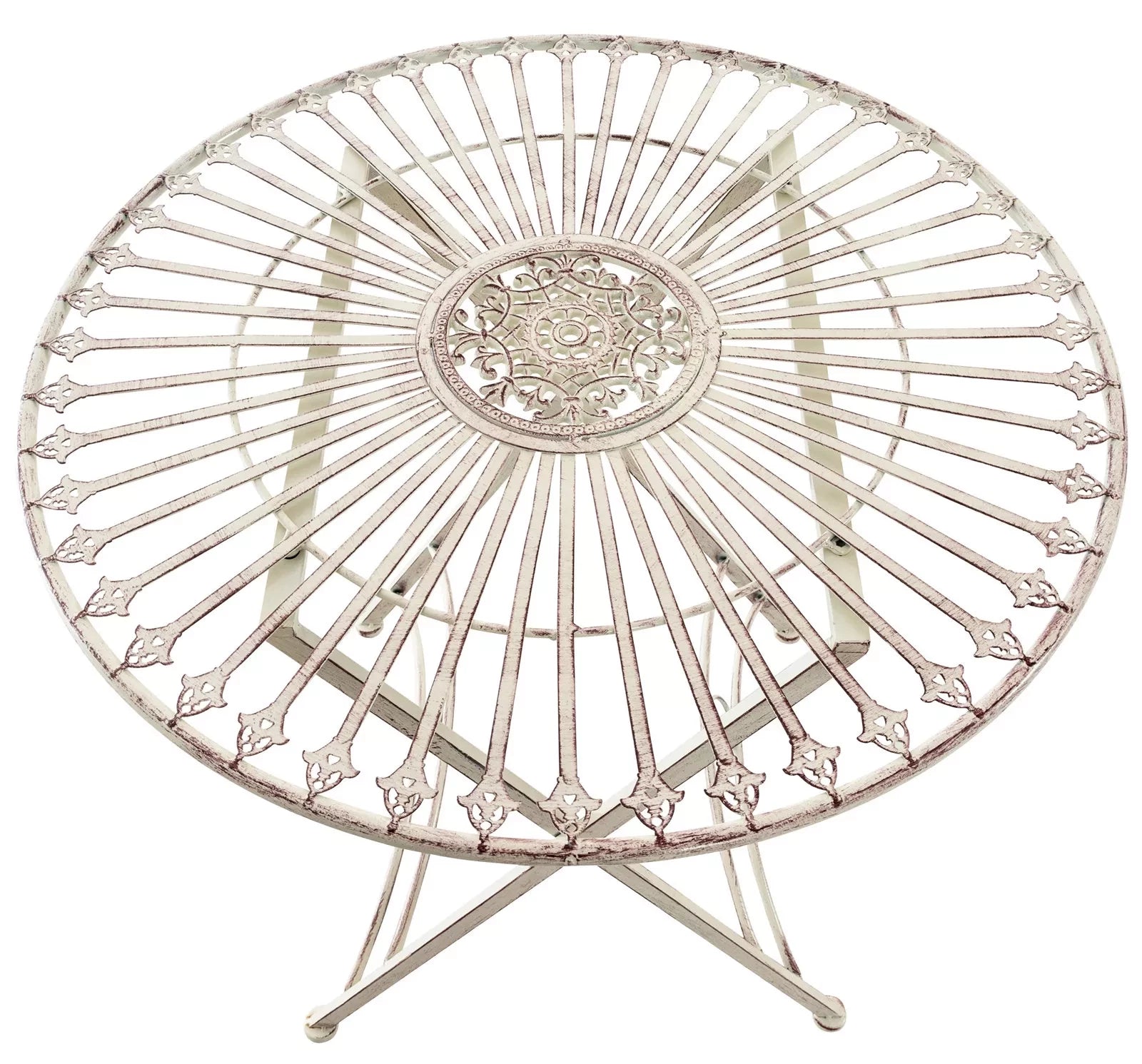 In And OutdoorMatch Runder Gartentisch aus Metall Lysanne – 4 Personen – Wetterfest – Creme – 71 x 71 x 71 cm