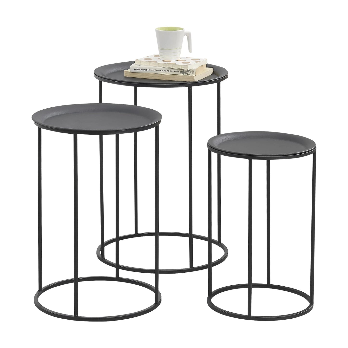 In And OutdoorMatch Couchtisch Garett - Rund - 3er-Set - Schwarz - 45xØ30 - 50xØ35 - 55xØ40 cm - Metall - Modernes Design