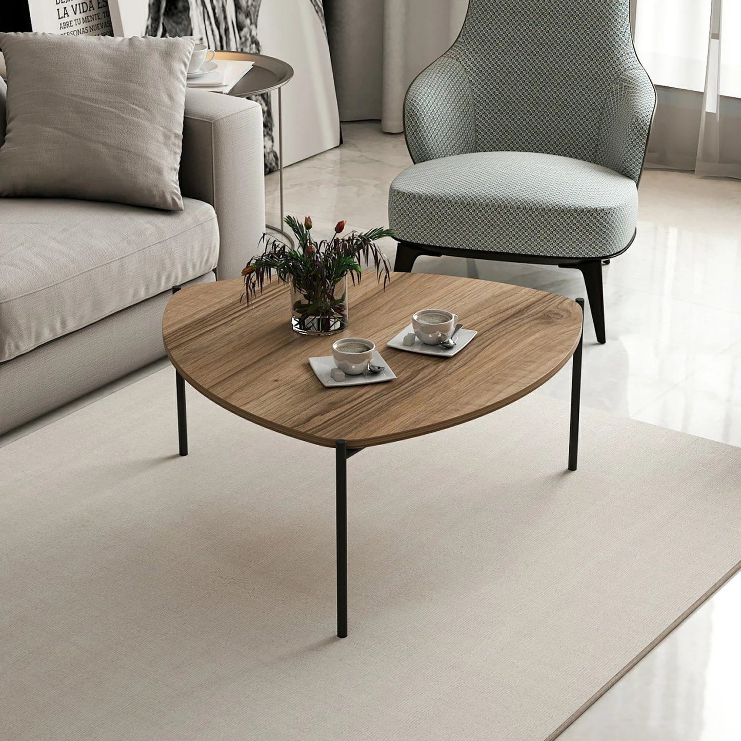 In And OutdoorMatch Couchtisch Marcus - 40x90x89 cm - Walnuss und Schwarz - Spanplatte und Metall - Modernes Design