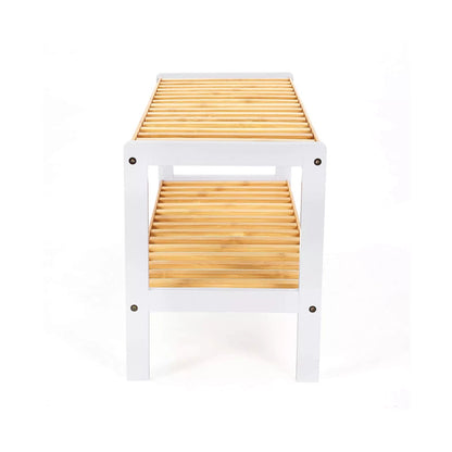 In And OutdoorMatch Schuhbank Concepcion – Bambus weiß 2 Schichten – Stauraum – Flurbank – 70 x 26 x 33 cm