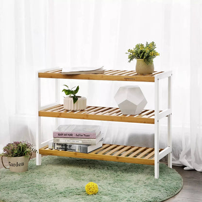 Das InAndOutdoorMatch Schuhregal ist der ideale Organizer für den Flur oder die Diele. Sie erhalten ein schickes Schuhregal, das durch gute Verarbeitung überzeugt und äußerst dekorativ ist. Es sorgt nicht nur für Ordnung in Ihrem Zuhause, Sie können es auch zur Präsentation von Schuhen und Dekorationsartikeln im Geschäft verwenden. In den 4 Ablagefächern finden Schuhe, Taschen, Pflanzen, Körbe und Badaccessoires wie Handtücher Platz. Hier sind weitere Ideen. Warum sollten Sie sich für das Schuhregal von Songmics entscheiden? Songmics ist stets kundenorientiert und setzt alles daran, qualitativ hochwertige Artikel zu einem guten Preis-Leistungs-Verhältnis zu liefern. Wir verfügen über einen hervorragenden Kundenservice und werden unser Bestes tun, um Ihre Probleme zu lösen. Hinweis: - Setzen Sie sich nicht darauf und lehnen Sie sich nicht darauf. Produktdetails: - Maße: 70 x 55 x 26 cm (B x H x T) - Material: Bambus - Verpackungsmaße: 69 x 31 x 11 cm - Gewicht: 3,4 kg Lieferumfang: - 1 x 3-stöckiges Schuhregal