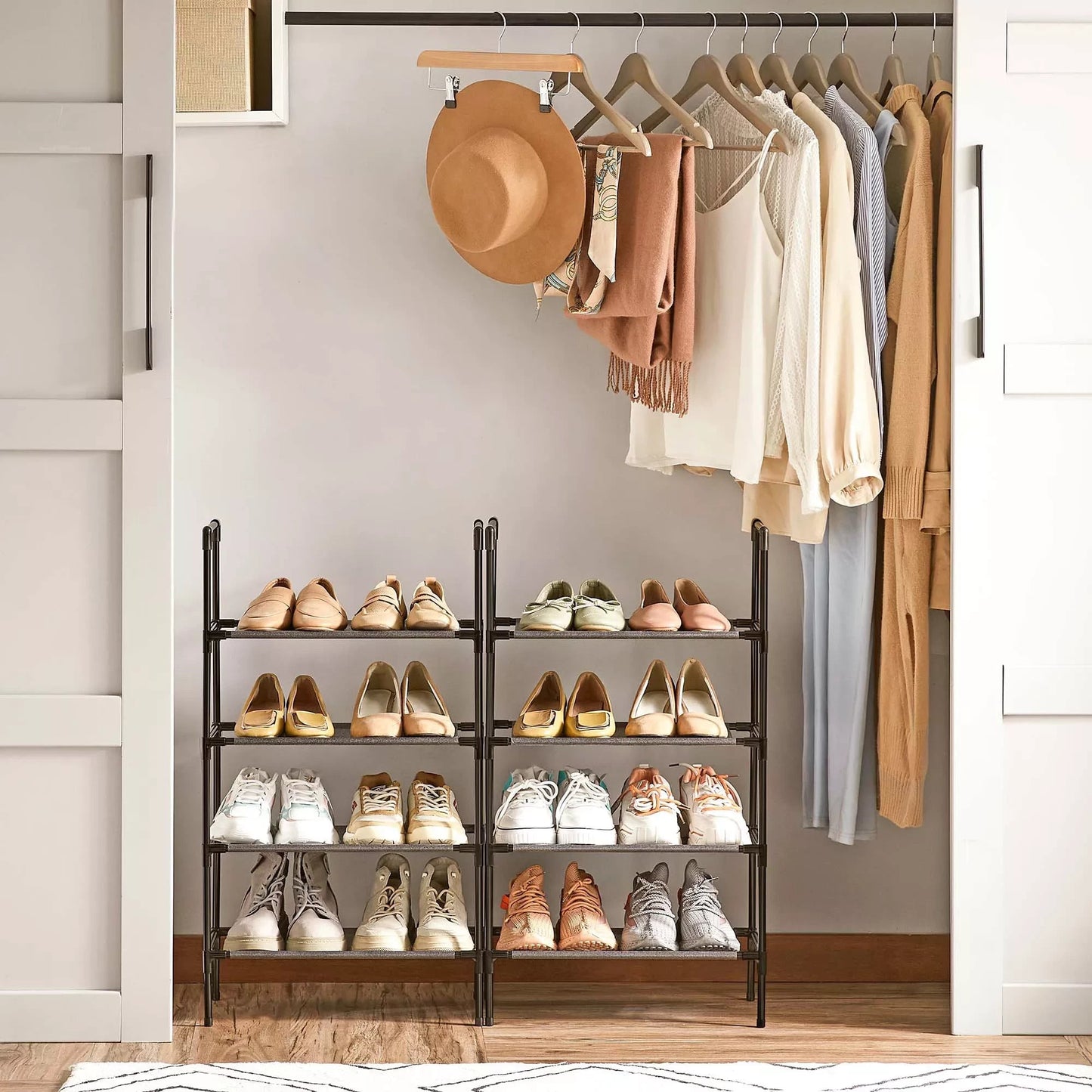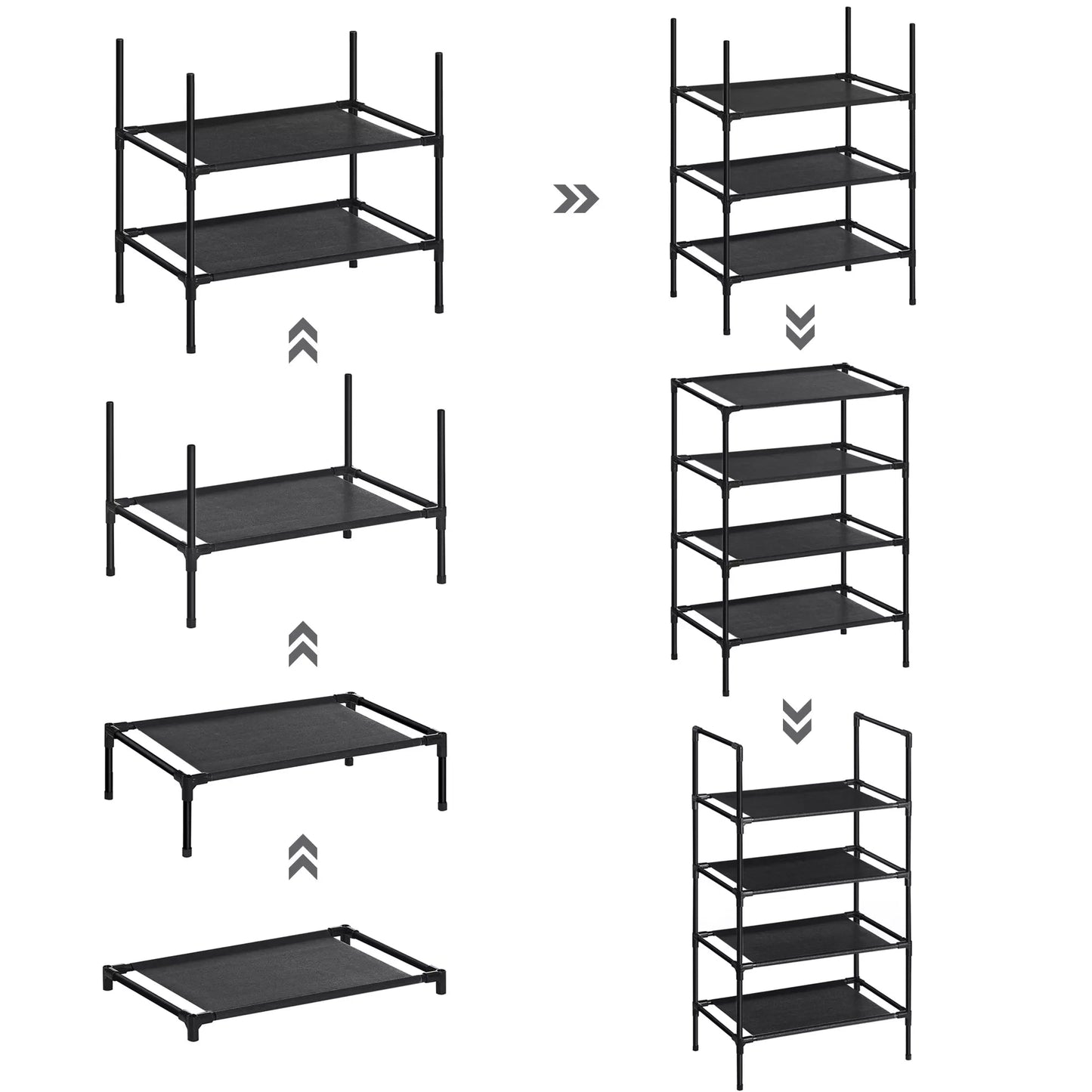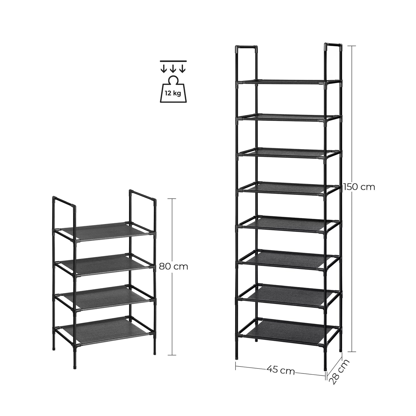 In And OutdoorMatch Schuhregal Joanne – 2er-Set – mit 4 Regalen – Schuhregal – Schuhaufbewahrung – Metallrahmen – Vliesregale – für Flur, Schlafzimmer – Wohnzimmer – 45 x 28 x 80 cm – Schwarz