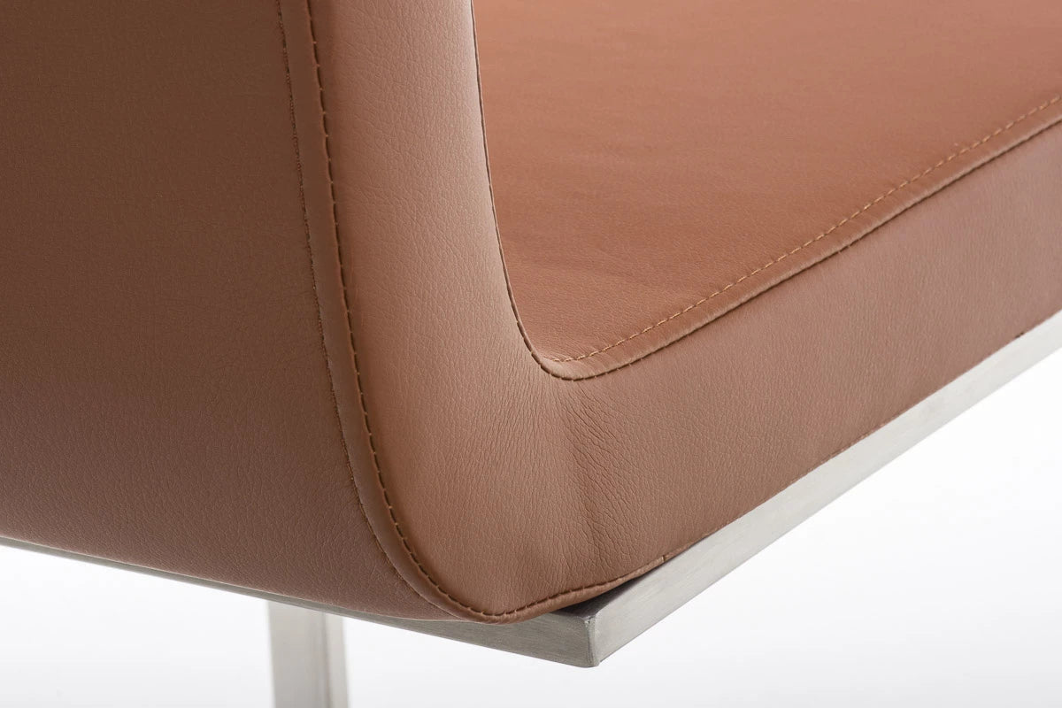 De brede zitting en hoge rugleuning maken comfortabel zitten mogelijk, ook voor langere tijd. De aangenaam gevoerde zitting met fijne kunstleren bekleding belooft comfort en ziet er eenvoudigweg chic uit. Bovendien zwenkt hij vrij en past hij zich precies aan de beenlengte en het gewicht van de zittende persoon aan. Dankzij de onderhoudsvriendelijke materialen zijn de zitting en het roestvrijstalen frame bovendien snel en eenvoudig schoon te maken.