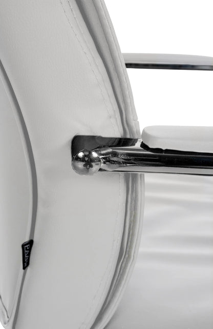 Deze bezoekersstoel geeft elke ruimte een exclusieve uitstraling. De comfortabele stoel overtuigt niet alleen door zijn uitstekende ziteigenschappen, maar ook door zijn moderne design. Hij kan vrij zwaaien en past zich precies aan de beenlengte en het gewicht van de zittende persoon aan. Dankzij de ergonomisch gevormde zitting en comfortabele armleuningen is zelfs langer zitten niet vermoeiend. De comfortabele vulling is bedekt met kunstleer. De Justina bezoekersstoel ziet er voor elke gelegenheid geweldig uit op het robuuste metalen frame - het enige wat u hoeft te doen is de juiste kleur kiezen uit ons bestelaanbod.