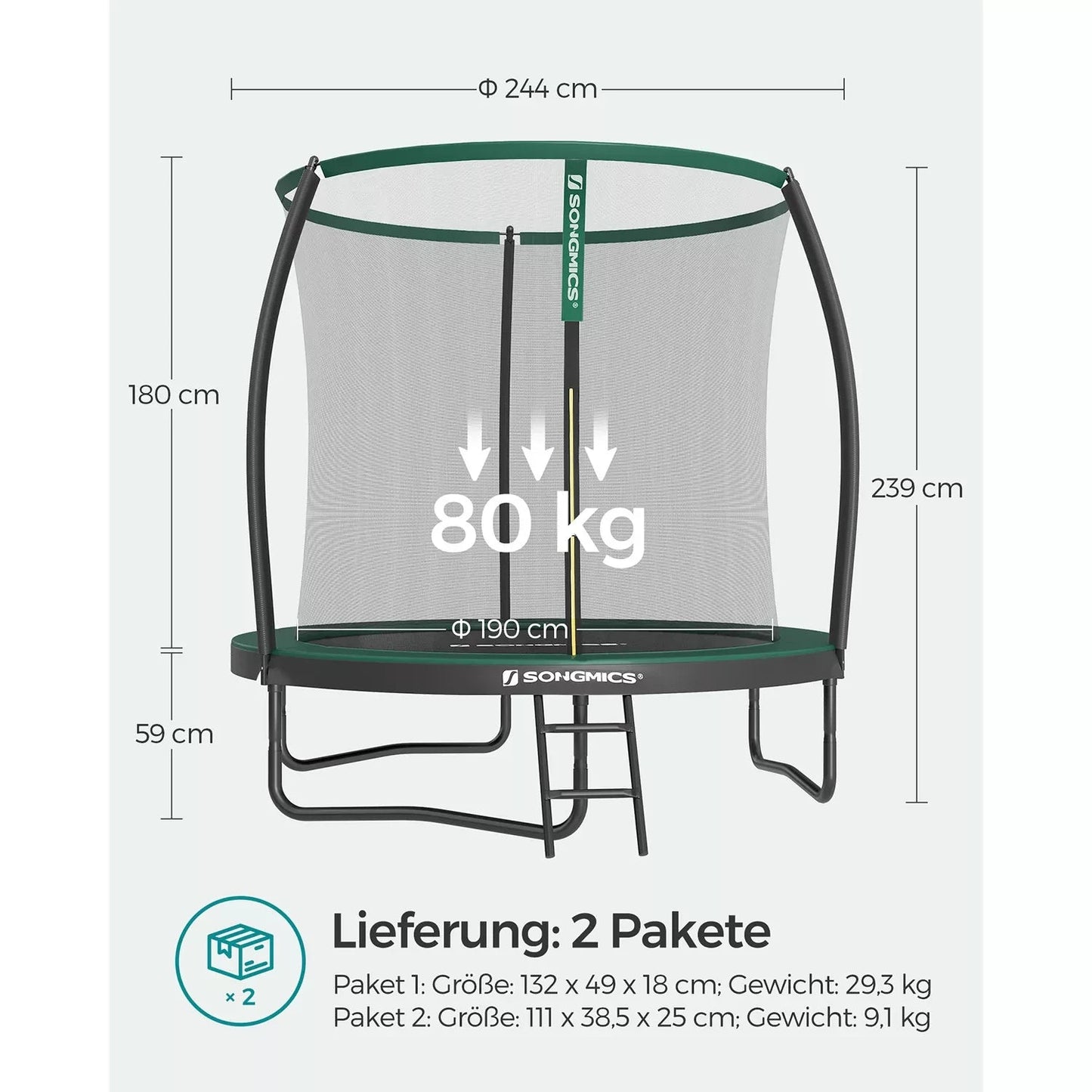 In And OutdoorMatch Trampolin Jordi – 244 cm grün – mit Sicherheitsnetz & Leiter – bis 80 kg belastbar