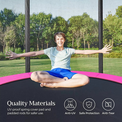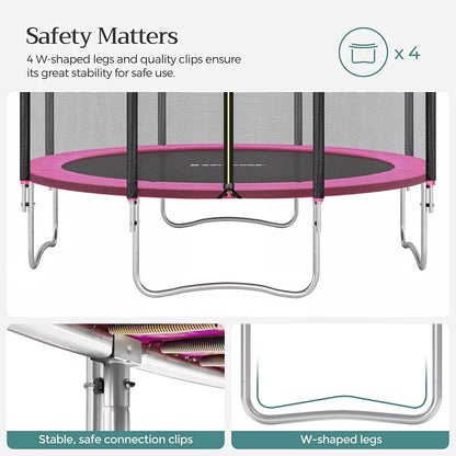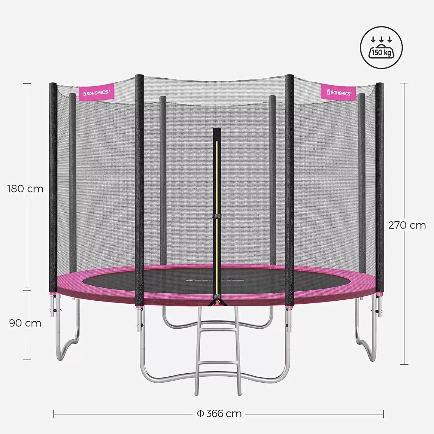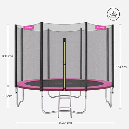 In And OutdoorMatch Trampolin Lela - 366 cm - mit Sicherheitsnetz & Leiter - Pink - Rund - Garten - bis 150 kg belastbar