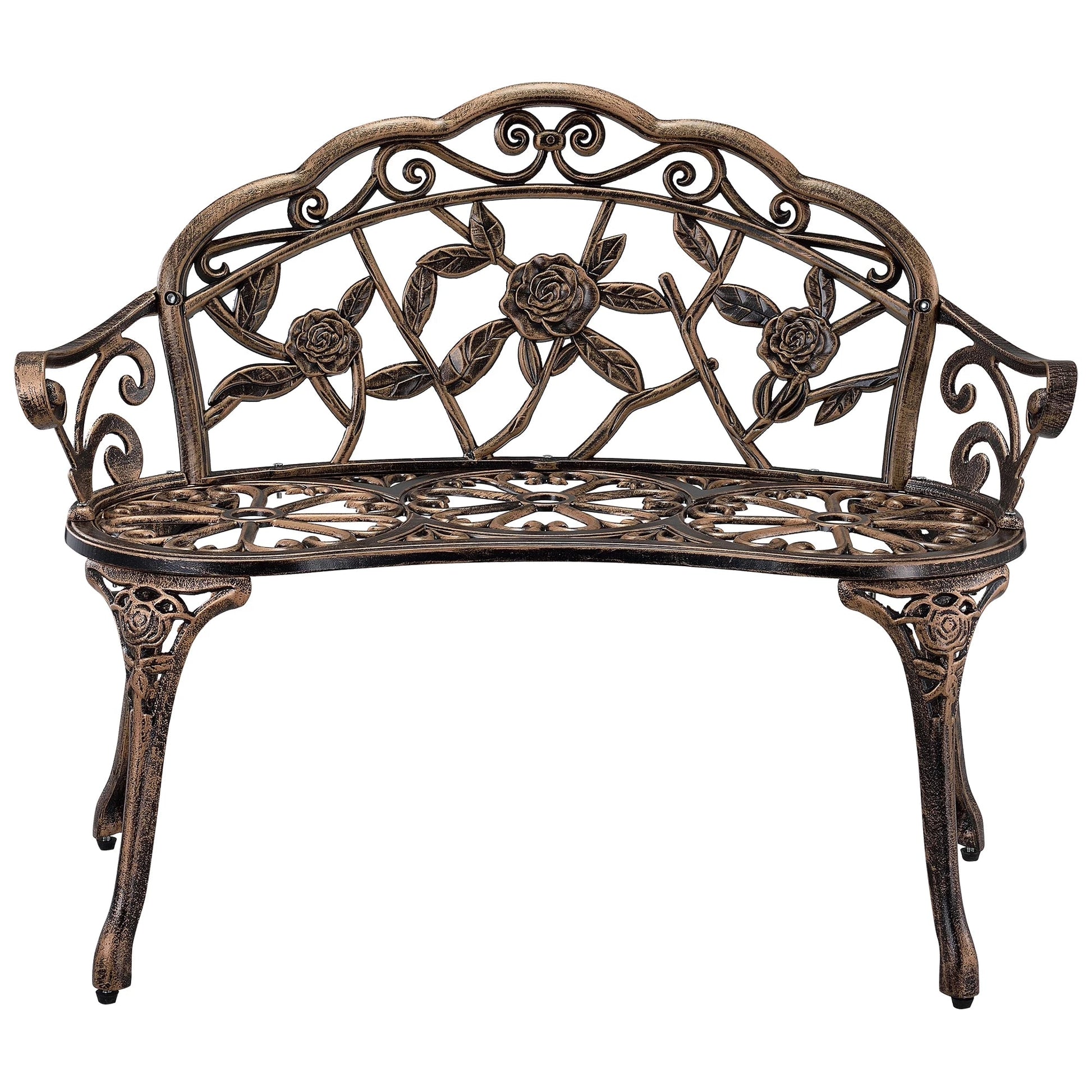 In And OutdoorMatch Gartenbank Bailey – Zweisitzer – Gusseisen und Aluminium – 100 x 54 x 80 cm – bronzefarben – stilvolles Design