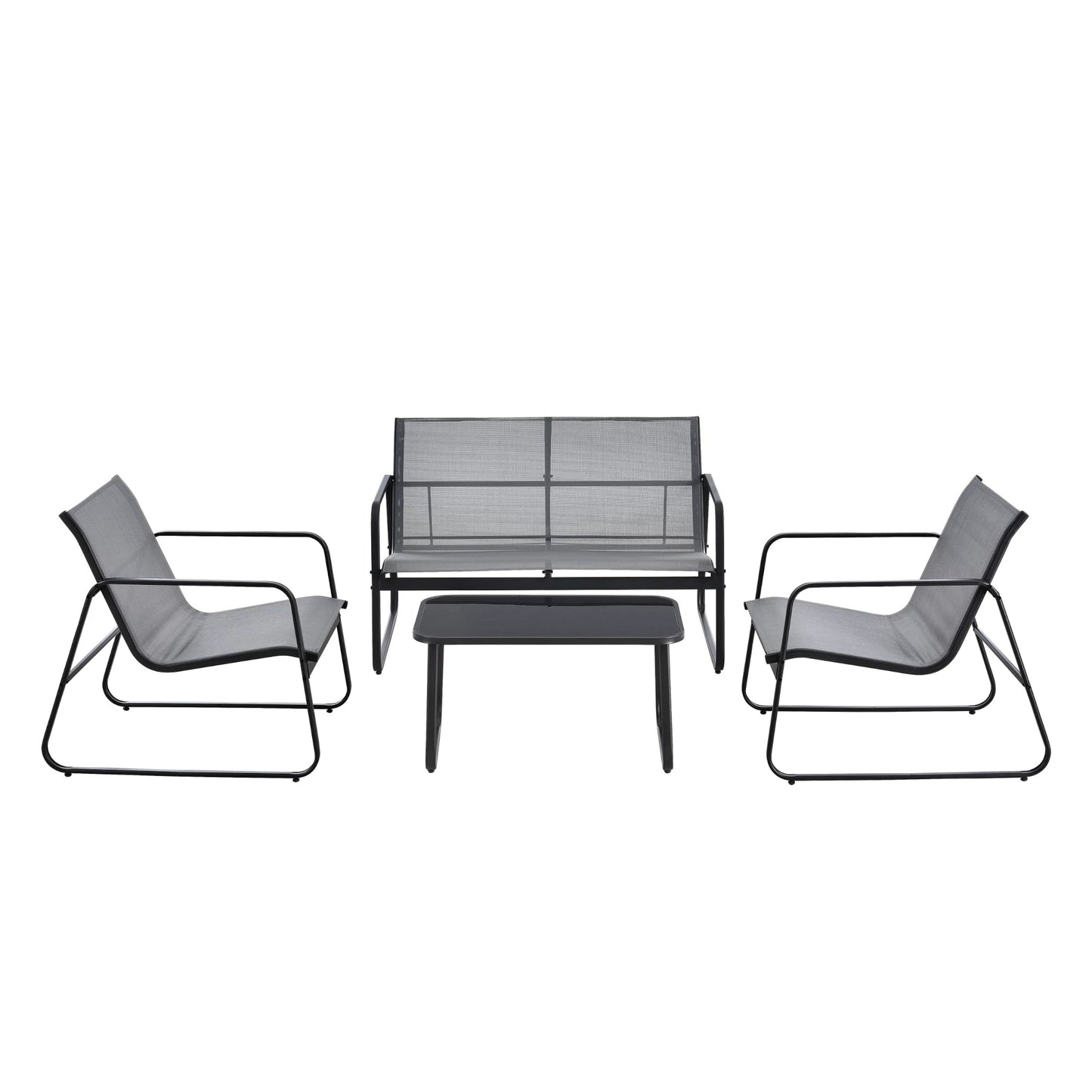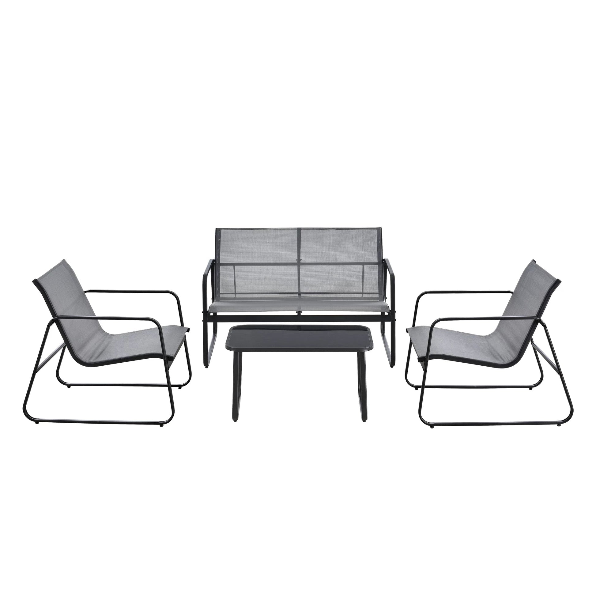 In And OutdoorMatch Gartenset Dannie – 4-teilig – Lounge-Set – Hellgrau und Schwarz – Stahl, Glas und Stoff – Stilvolles Aussehen