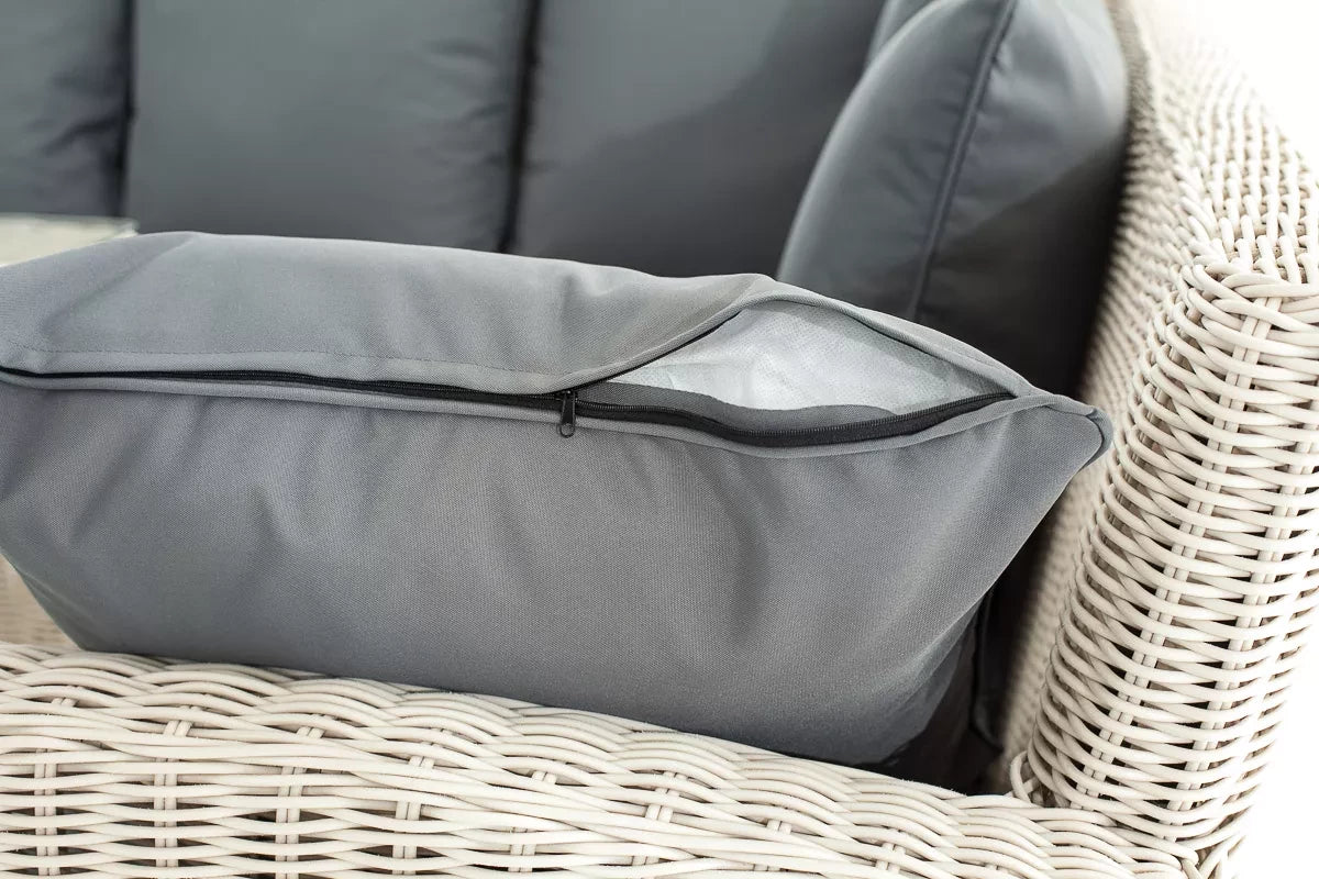 In And OutdoorMatch Gartenset Vincenza – Glastisch aus Rattangeflecht – Gartenmöbel – Esstisch – Lounge-Set – Tisch im Freien – Couchtisch – Creme/Grau – 6 Personen