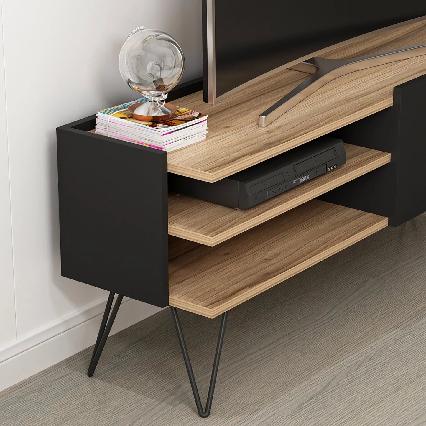 In And OutdoorMatch TV-Schrank Audra – 124 x 37 x 50 cm – Schwarz und Holzfarben – Spanplatte und Metall – Stilvolles Design